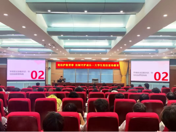 为了深入贯彻中央全面依法治国工作会议精神,3月31日下午,在3号实训楼三楼学术报告厅,保卫处特邀开封市公安局示范区分局民警到校开展《宪法护航青春法治守护成长一一大学生宪法宣传教育》讲座。本次活动增强了广大青年学生的宪法意识,提高了法治观念。