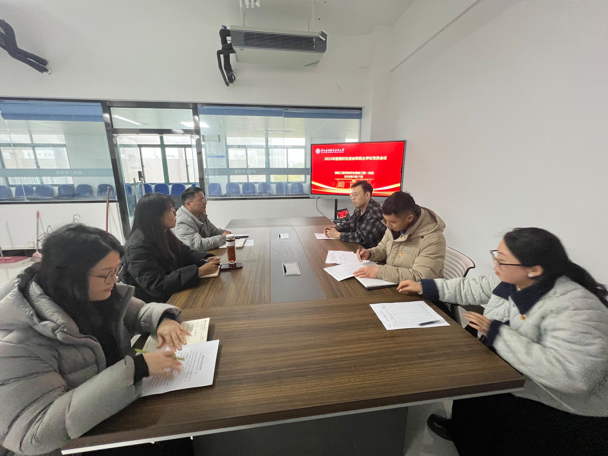 3月17日下午,测绘工程学院学生测绘工程一支部在SY6312会议室召开2025年度组织生活会和民主评议党员会议。会议由党支部书记李忠旺老师主持,党支部全体党员参加。