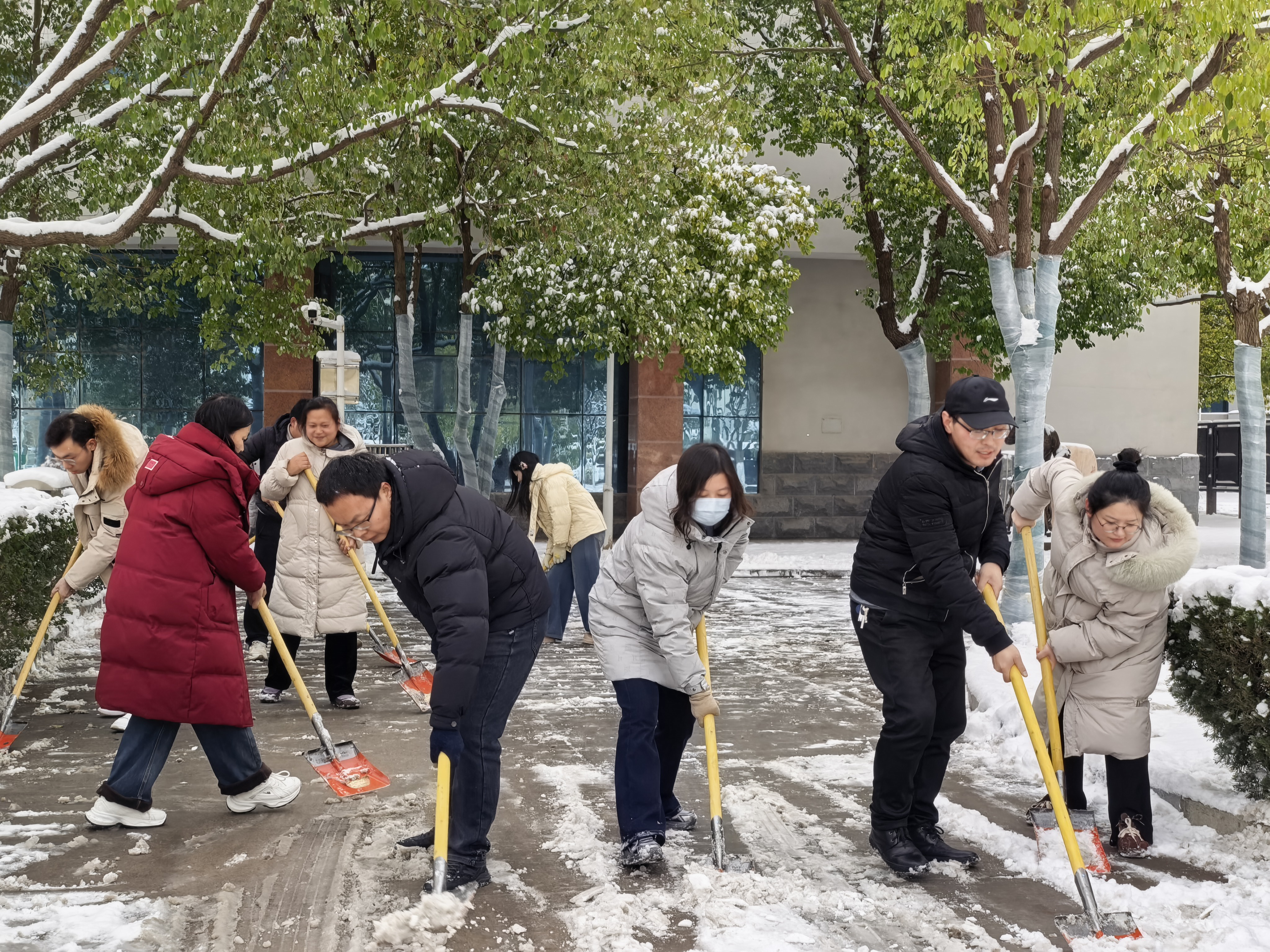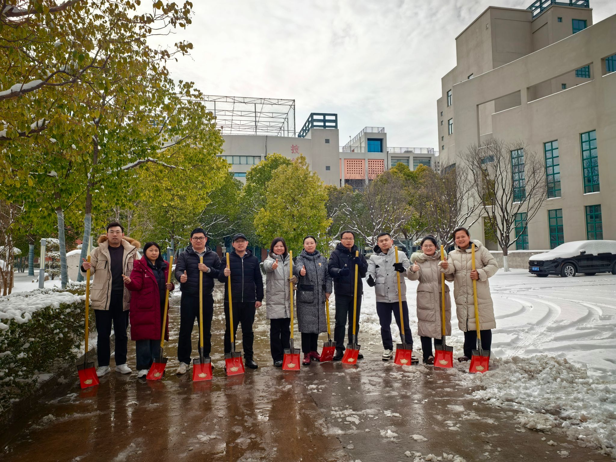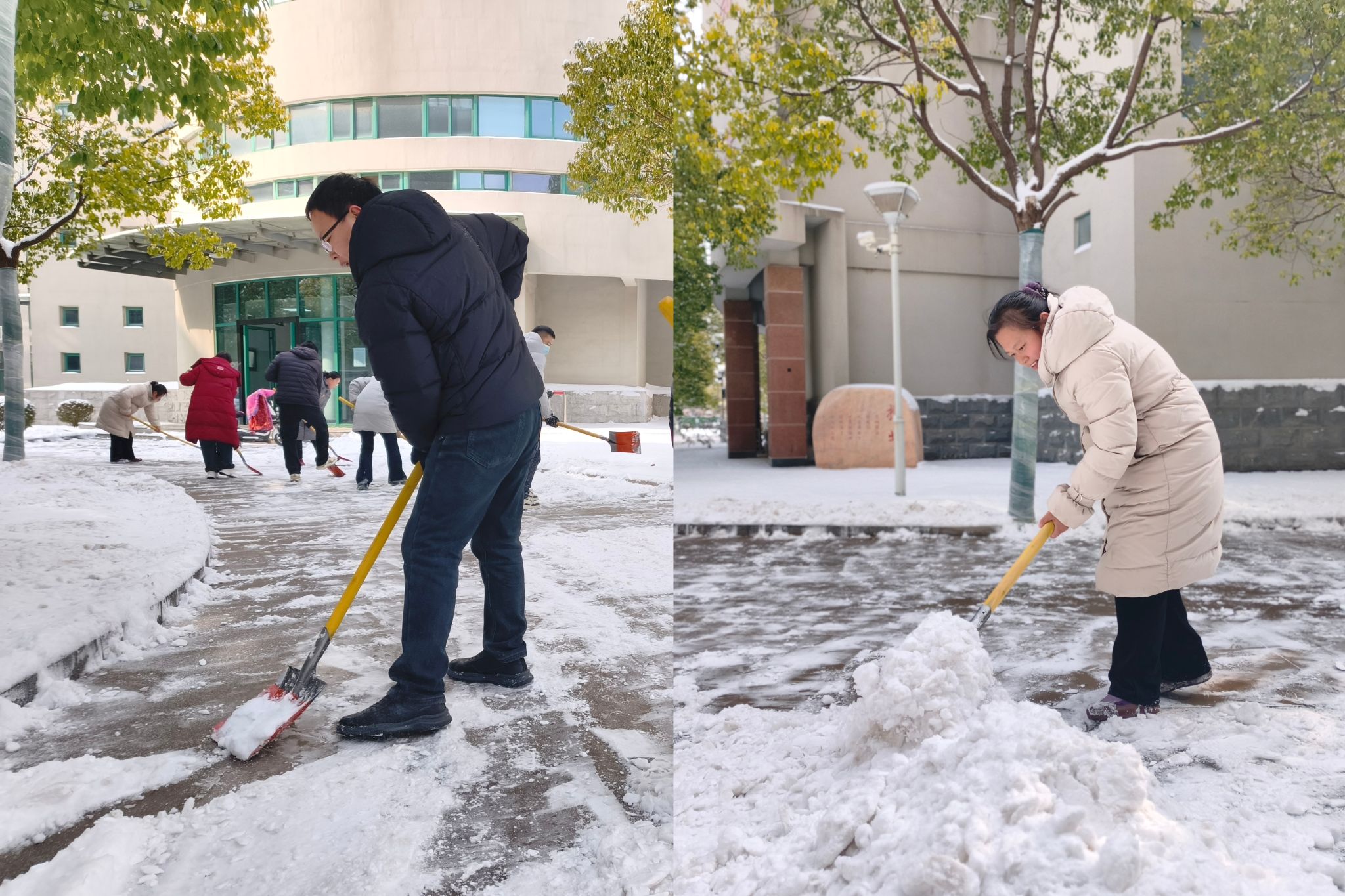 党总支书记高琼和院长何宽带领教师党员清理校园积雪