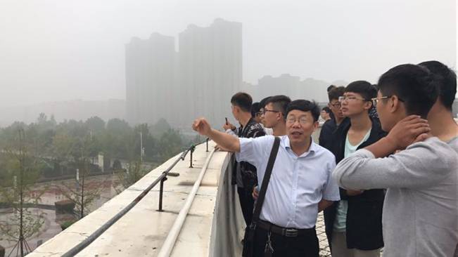 图1 水利职教名师、专业带头人许加东老师带领学生眺望测量实训场