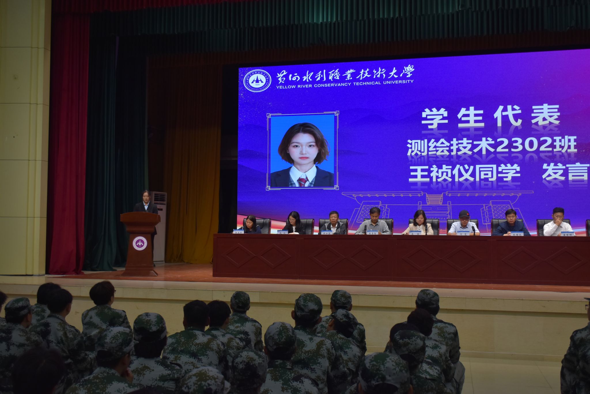 测绘技术2302班王祯仪同学作为老生代表发言,表达了对学校、学院的感激之情,分享了思想方面、学习方面和生活方面的一些经验。
