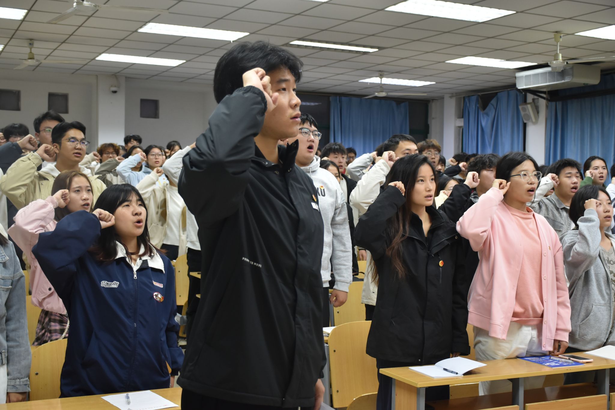 在庄重的氛围中,全体学员重温入团誓词,铿锵的誓言表达了对共青团组织的忠诚与担当。誓词完毕后,第一堂团课学习正式开展,为学员们开启了理论学习的新篇章。