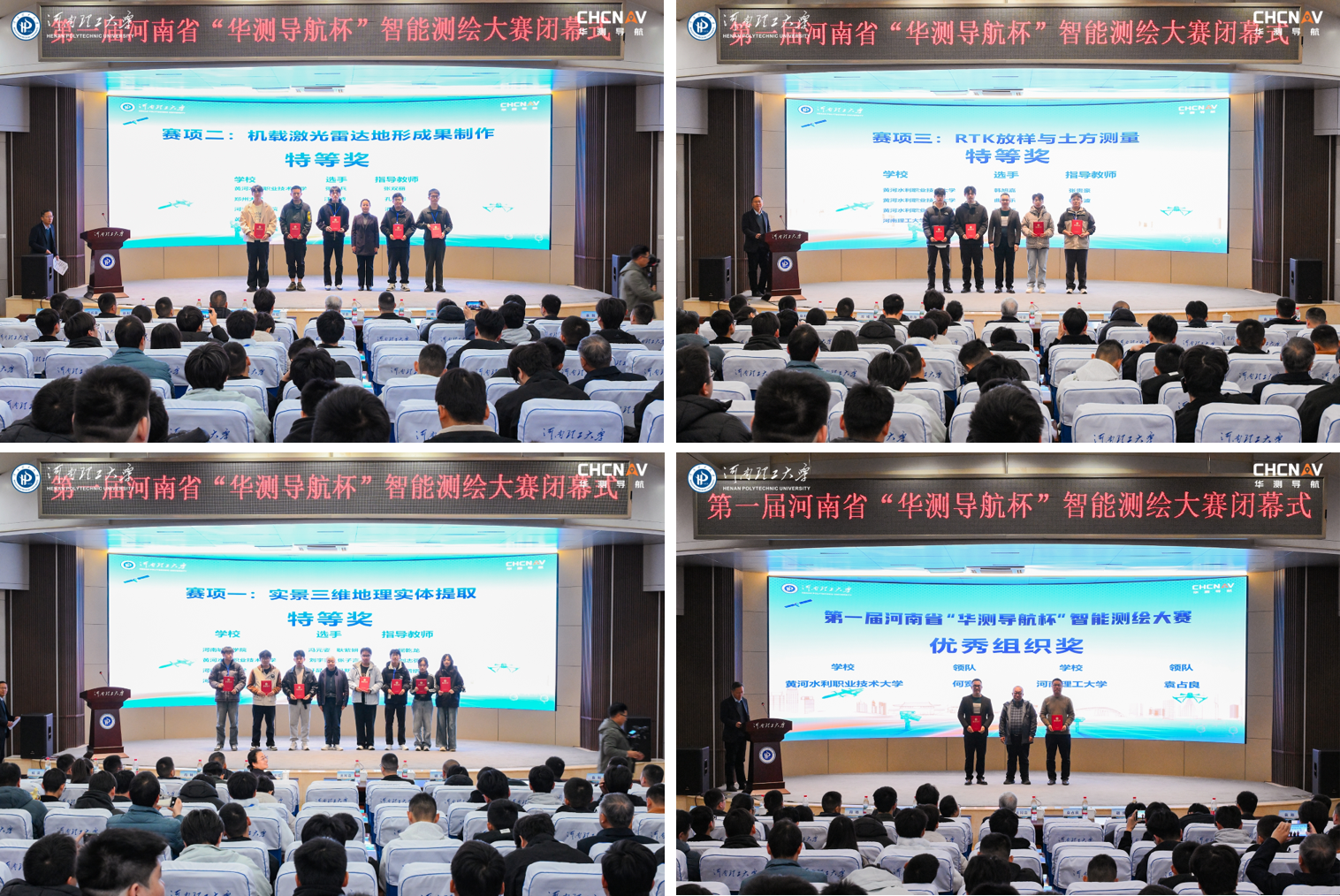 11月28日至11月30日,由河南省测绘学会主办,河南理工大学、测绘工程国家级实验教学示范中心承办,华北水利水电大学、河南城建学院、上海华测导航技术股份有限公司协办的第一届河南省“华测导航杯”智能测绘大赛在河南理工大学成功举办。来自汇聚了全省19所高校的127支参赛队伍同台竞技,由黄河水利职业技术大学测绘工程学院武烜玉等16名学生组成的12支队伍,参加了实景三维地理实体提取、机载激光雷达地形成果制作、RTK放样与土方测量三个赛项的角逐。经过奋勇拼搏,3个赛项共斩获6个特等奖、4个一等奖和2个二等奖。学校以最优成绩获得“优秀组织奖”的第一名,党争、刘志强、杜勇波、王伟峰、张贵豪、张双丽6名教师获评“优秀指导教师”。