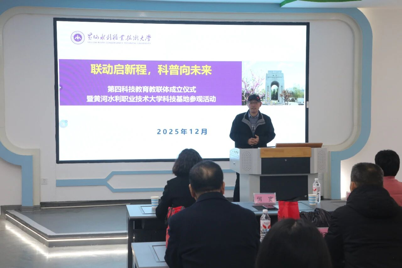 12月26日下午,开封市科技教育第四教联体成立仪式暨黄河水利职业技术大学科技基地参观活动在我校成功举办。测绘工程学院院长何宽教授作为教联体专家、金明中小学科技教育副校长组织了此次活动。与会者还有开封大学、金明中小学等10所成员校的校领导及科学教师代表。