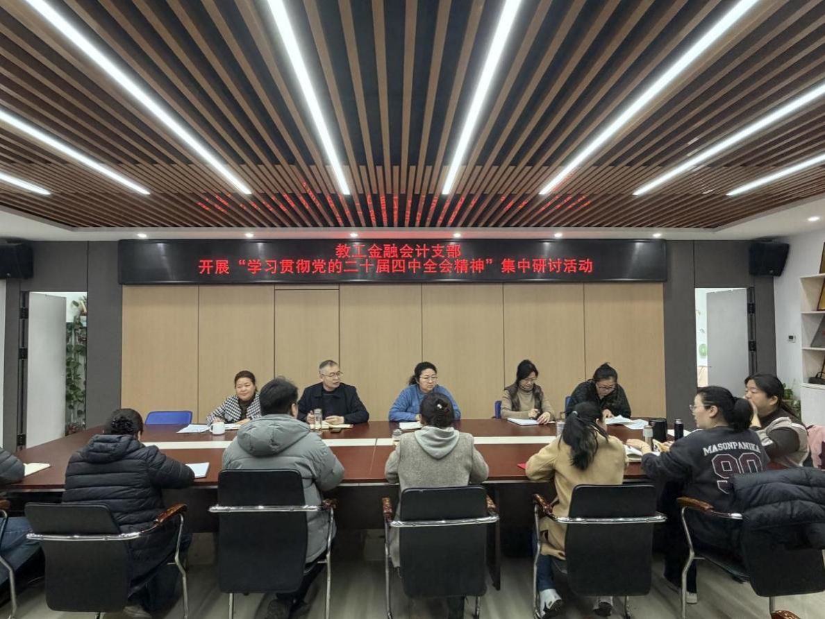 为推动理论学习走深走实,切实把党的二十届四中全会精神转化为履职实效,3月24日,教工金融会计支部组织全体党员教师开展“学习贯彻党的二十届四中全会精神”集中研讨活动,实现理论学习与实践思考深度衔接。