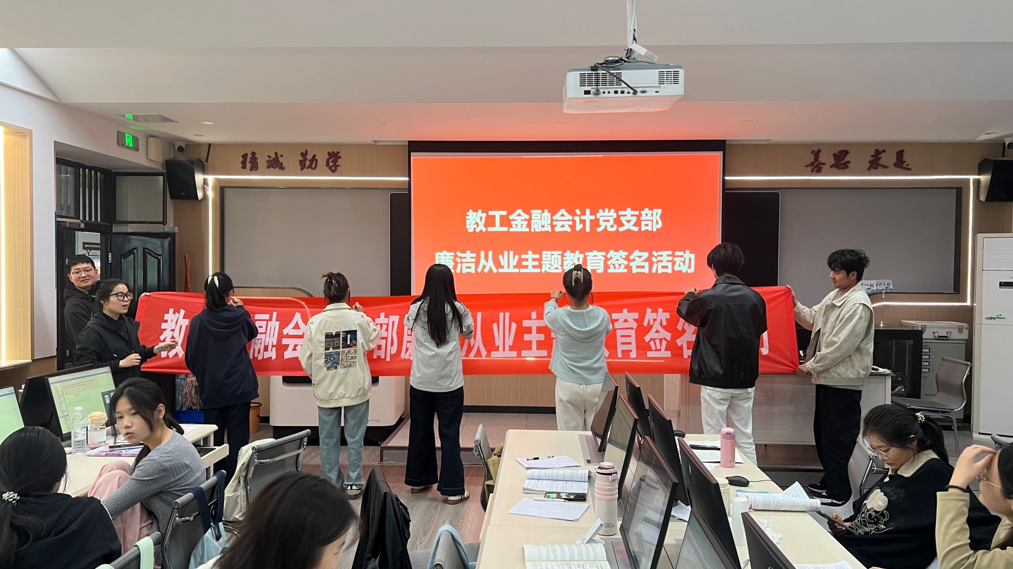 为厚植廉洁文化根基,引导财经学子树立正确职业操守,营造风清气正的育人氛围,4月3日,教工金融会计党支部举办廉洁从业主题教育签名活动。本次活动由党支部宣传委员闫艳主持。