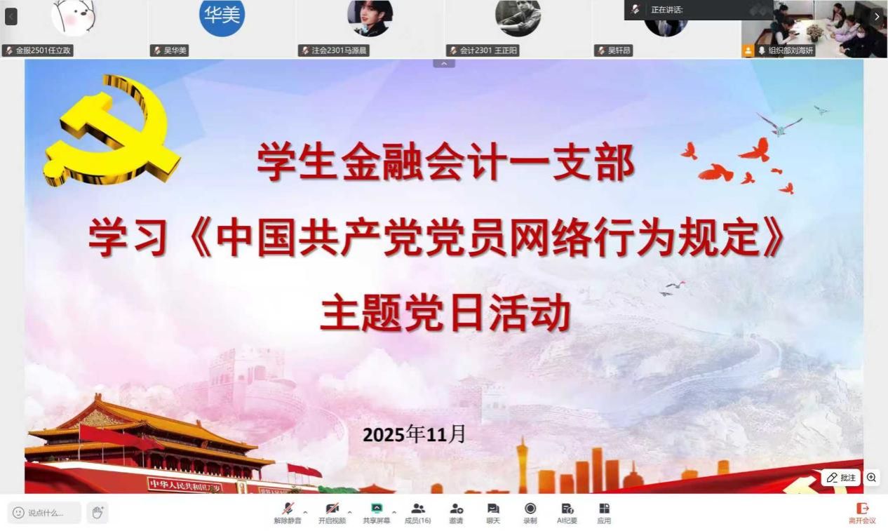 通过此次主题党日活动,学生金融会计一支部党员和预备党员进一步加深了对《中国共产党党员网络行为规定》的理解,增强了网络安全意识和纪律观念。大家纷纷表示,将在今后的学习和生活中严格规范自身网络言行,以实际行动维护网络安全,展现新时代学生党员的良好形象。