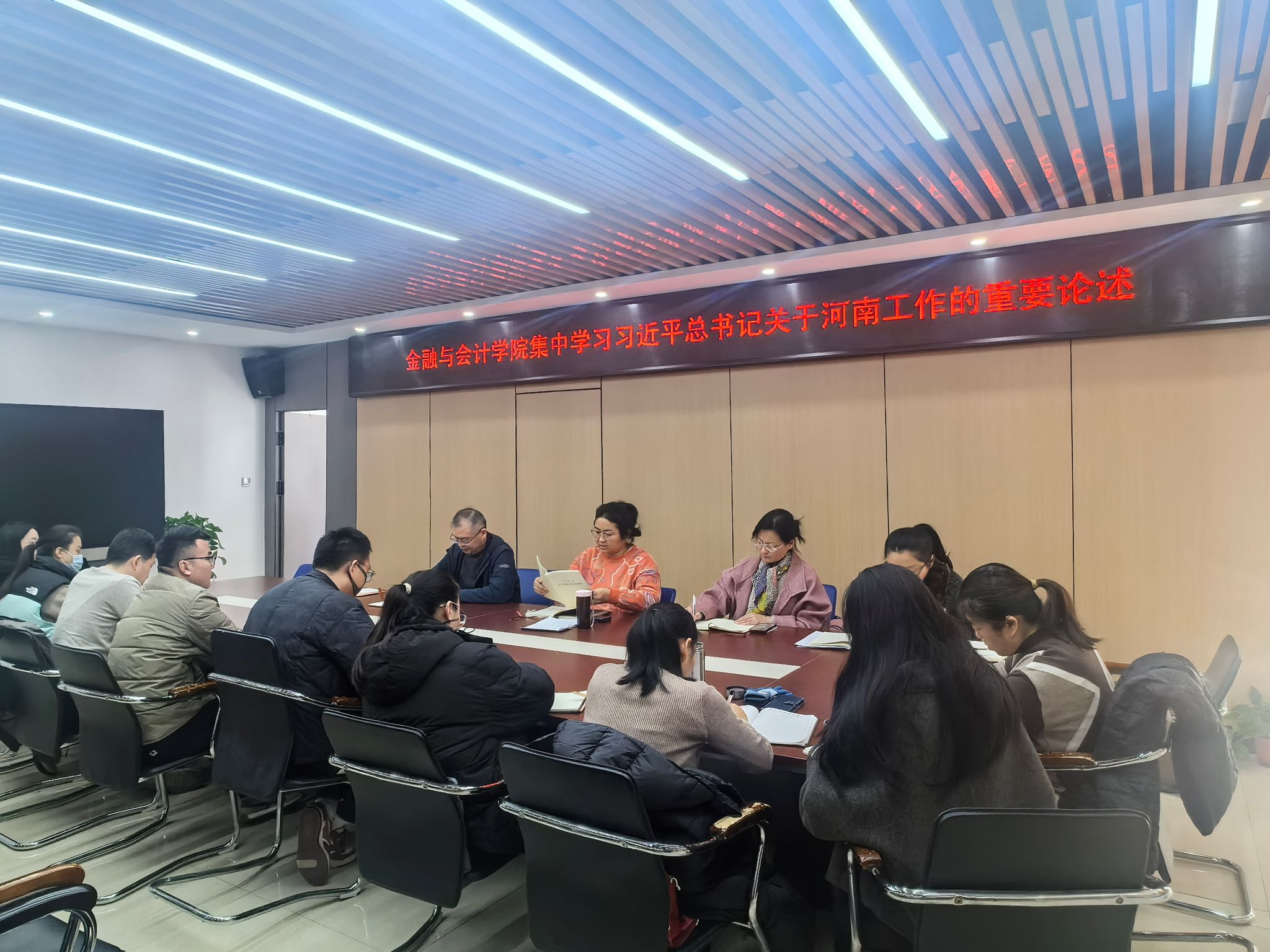 11月18日上午,金融与会计学院SY5412会议室召开政治理论专题学习会,集中学习习近平总书记在河南考察时的重要讲话、习近平总书记关于河南工作的重要论述,全体科级以上干部参加,会议由院长吴宗奎主持