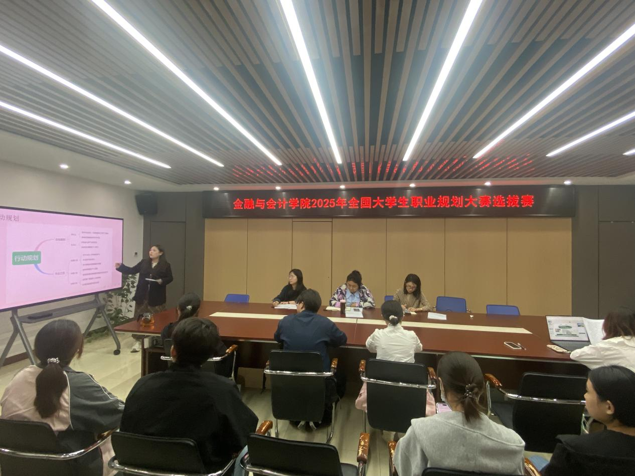 比赛现场,气氛紧张而热烈。参赛选手们结合精心准备的PPT,从自我认知、职业环境分析、职业目标定位、行动计划制定以及评估调整等方面,进行了全面而精彩的展示。他们的职业目标清晰多元,充分展现了金融会计学子立足专业、放眼未来的职业理想与蓬勃朝气。