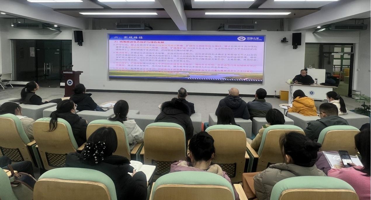 讲座伊始,陈家涛教授以黄河流域概况为切入点,系统梳理了黄河作为“中华母亲河”的文明脉络与自然特征。他指出,黄河不仅是华夏文明的发祥地,更承载着防洪保安、水资源供给、生态屏障等多重战略功能。针对黄河流域协调发展面临的突出问题,陈教授进行了深入剖析,他指出,当前流域存在水资源短缺、生态环境脆弱、人地矛盾尖锐、创新与开放水平不足、中心城市辐射带动弱、粮食生产经营困境等多重挑战。同时提出了流域九省共同努力,统筹推进生态保护与绿色发展,协同推进资源节约、清洁低碳、污染防治、环境保护和生态补偿的系统管理等实现路径。