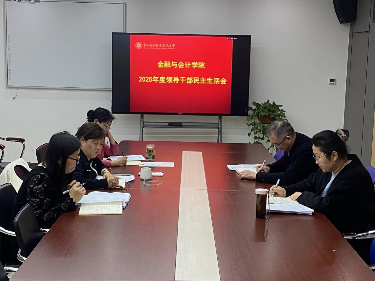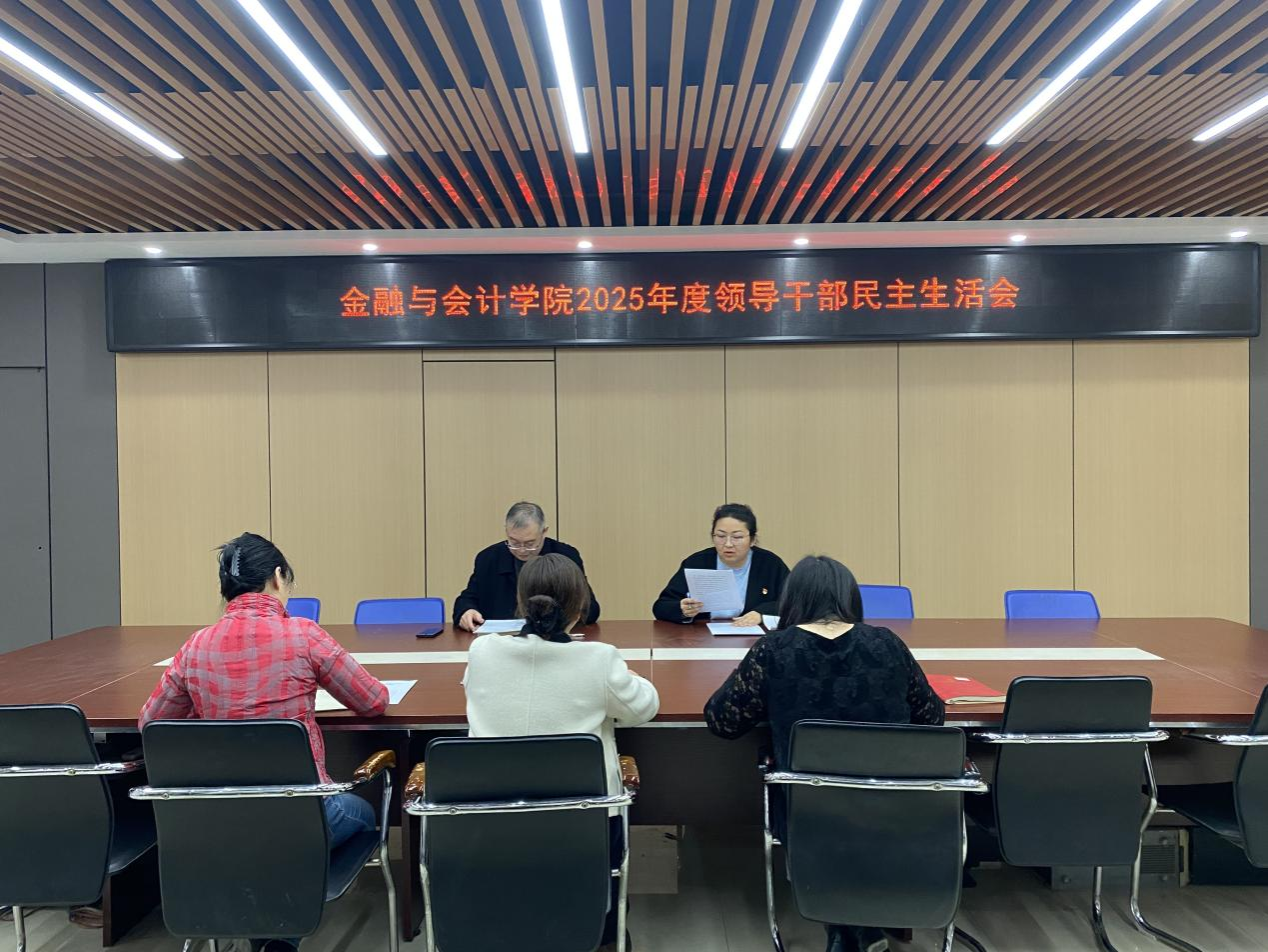 2月5日下午,金融与会计学院在SY5412会议室召开2025年度领导干部民主生活会,院党总支书记胡晓慧、院长吴宗奎、院党总支副书记霍卫红、副院长张会丽、副院长舒莎参加。会议由党总支书记胡晓慧主持。