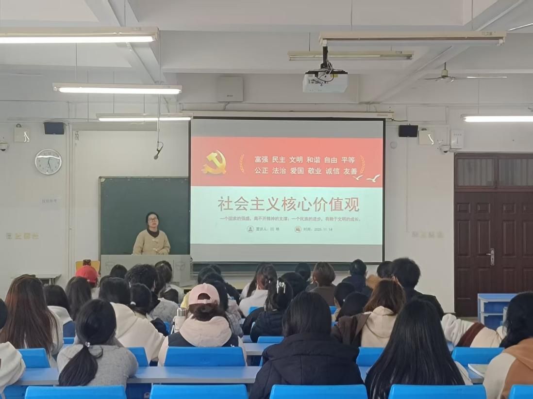 为引导入团积极分子筑牢信仰之基、把稳思想之舵,树立正确的价值观,11月14日,金融与会计学院在JX4303教室成功举办社会主义核心价值观专题团课。2025-2026学年第一学期业余团校全体学员参与学习,本次团课由2024级辅导员闫艳担任主讲。