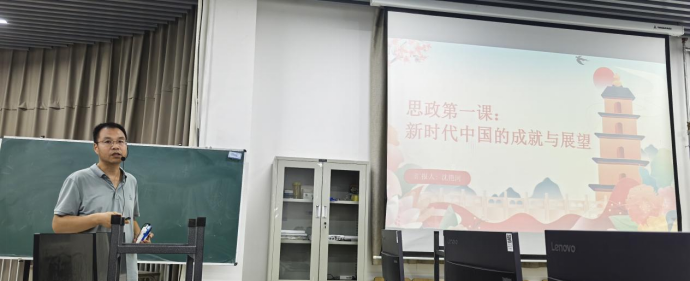 9月11日,电气工程学院副院长沈艳河以“新时代中国的成就与展望”为主题,为学院学生干部及学生代表讲授开学思政第一课,带领学生回顾国家发展成果,坚定理想信念,明确新时代青年使命。