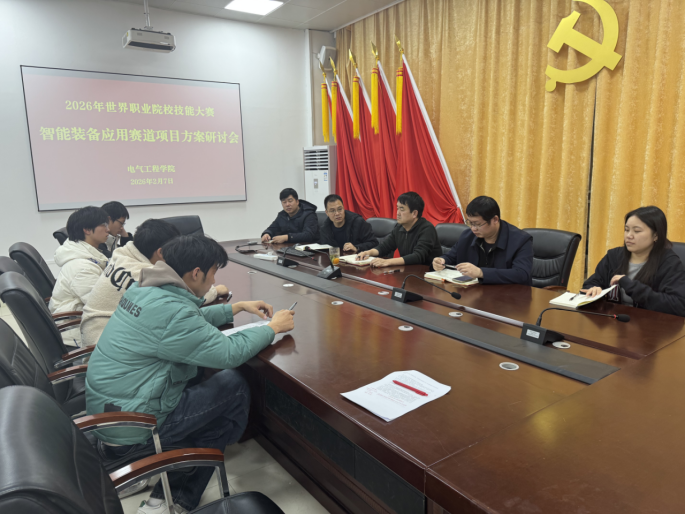 为进一步集中优势、精准突破,深化重点赛项备战工作,2月7日,我院组织召开2026年世界职业院校技能大赛第三期赛项研讨会。在前两期全面研讨与整体优化的基础上,本期会议聚焦“智能装备应用”赛道,开展专项深度论证与方案精修。学院党总支书记张延、院长王磊、副院长沈艳河出席研讨会,与该赛道指导教师及参赛学生团队进行了深入交流与集中攻关。