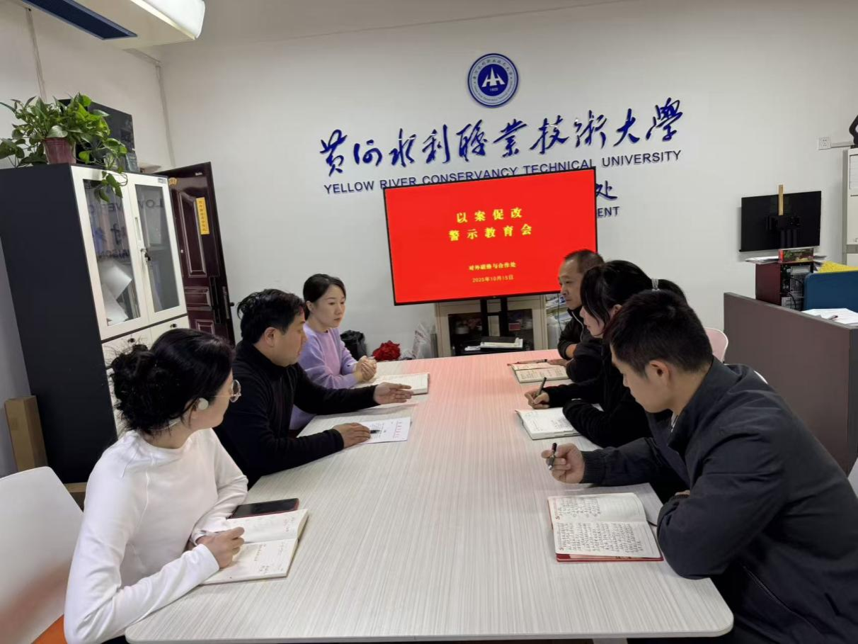 2025年10月15日,对外联络与合作处(校友会)支部在行政楼101会议室组织召开以案促改警示教育工作会议。支部书记姬尧主持会议,支部全体在校党员参会。