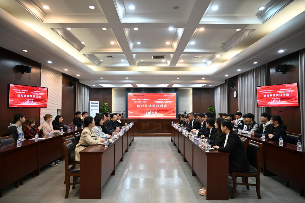 为贯彻落实新时代党的建设总要求,创新校企党建共建育人模式,2025年11月14日,对外联络与合作处(校友会)支部走进中国化学工程第十一建设有限公司,校企联合开展了以“党建联建聚合力,校企同心促发展”为主题的结对共建党日活动,双方党员代表共计20余人参加。