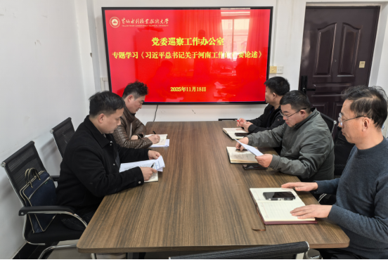 1118日下午,党委巡察工作办公室在行政楼325组织政治理论学习,深入学习研讨习近平总书记关于河南工作的重要论述《习近平总书记在河南考察时的重要讲话》等文件精神部门全体人员参加学习活动。