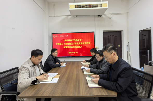 3月17日下午,党委巡察工作办公室在行政楼325室组织政治理论学习活动,专题学习研讨《教育部关于深化职业教育教学关键要素改革的意见》(以下简称《意见》),会议紧扣教育部提出的“动态调整专业设置、科学设计课程组合、优化教材呈现形式、细化教师能力清单、建设产教融合实习实训基地”五大改革任务展开深度研讨。部门全体人员参加学习会。