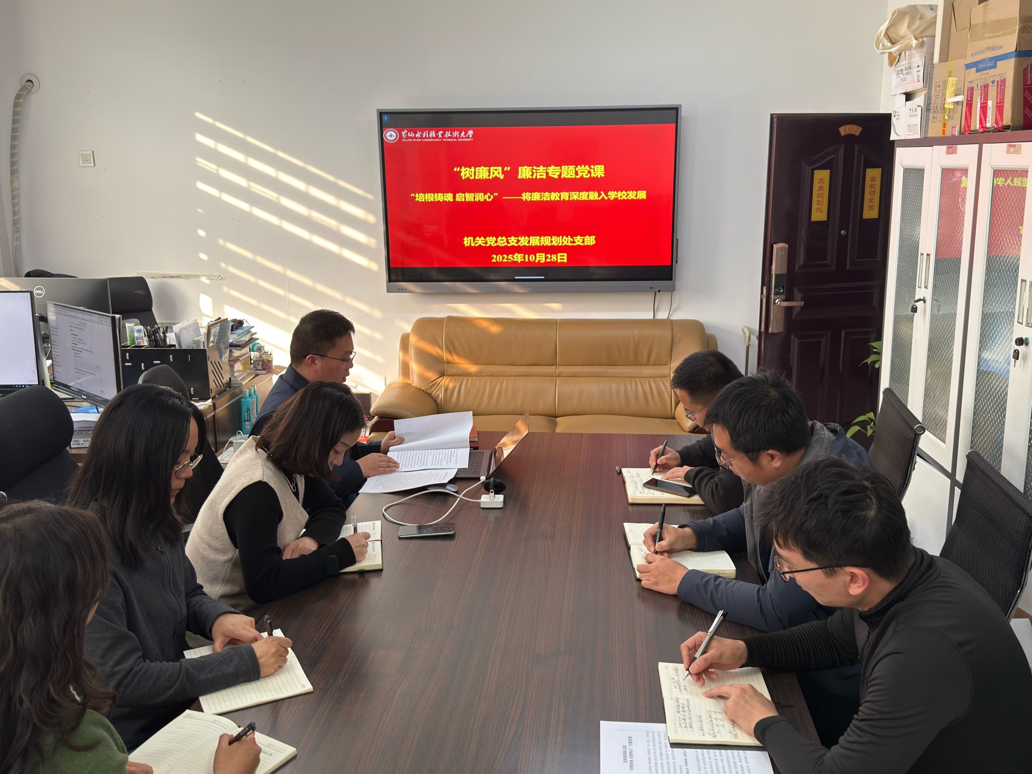为持续深化党风廉政建设,筑牢党员干部廉洁自律思想防线,10月28日,机关党总支发展规划处支部开展了“培根铸魂、启智润心”专题党课。本次党课由支部书记王忠伟主讲,支部全体党员参加学习。