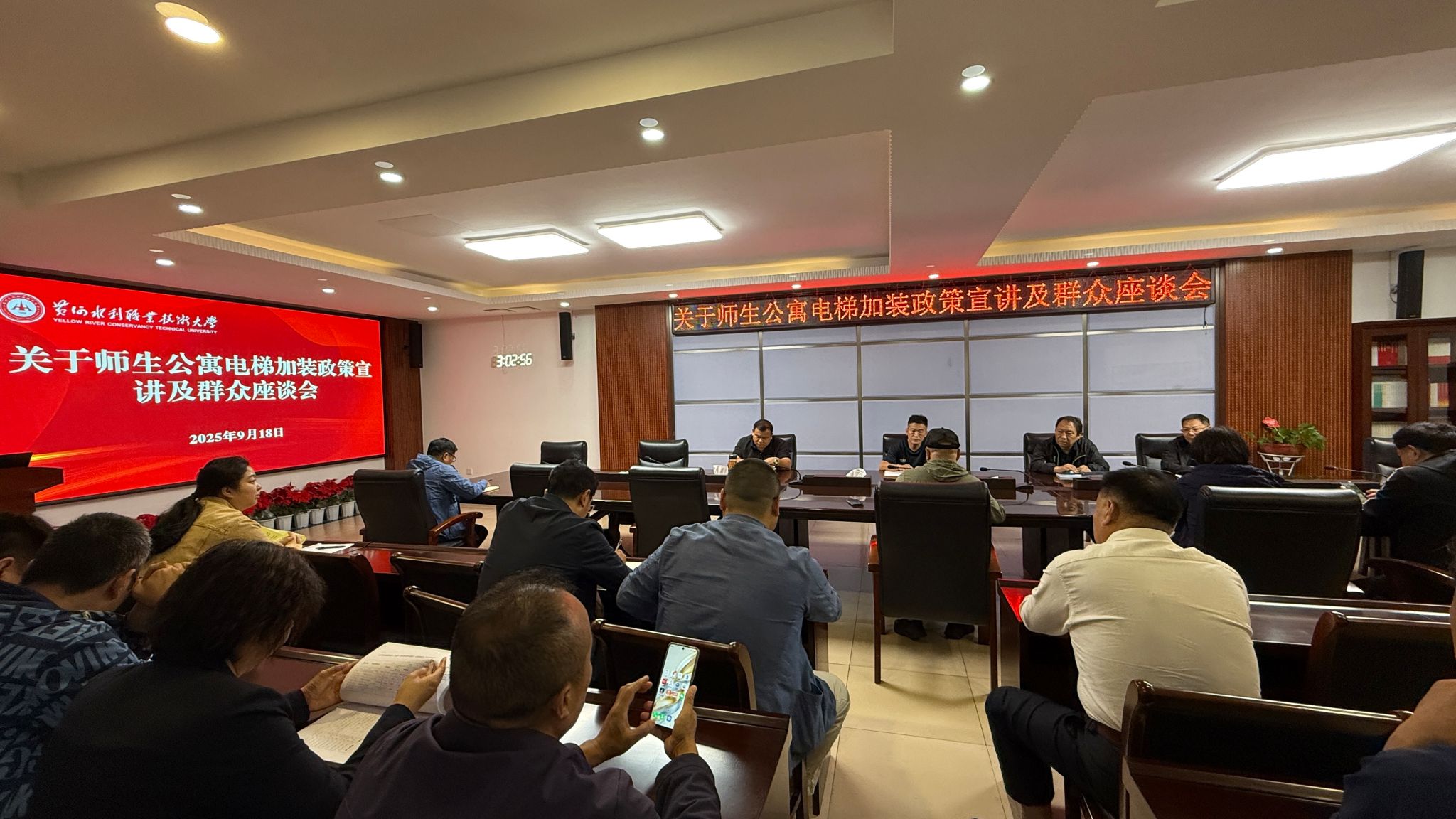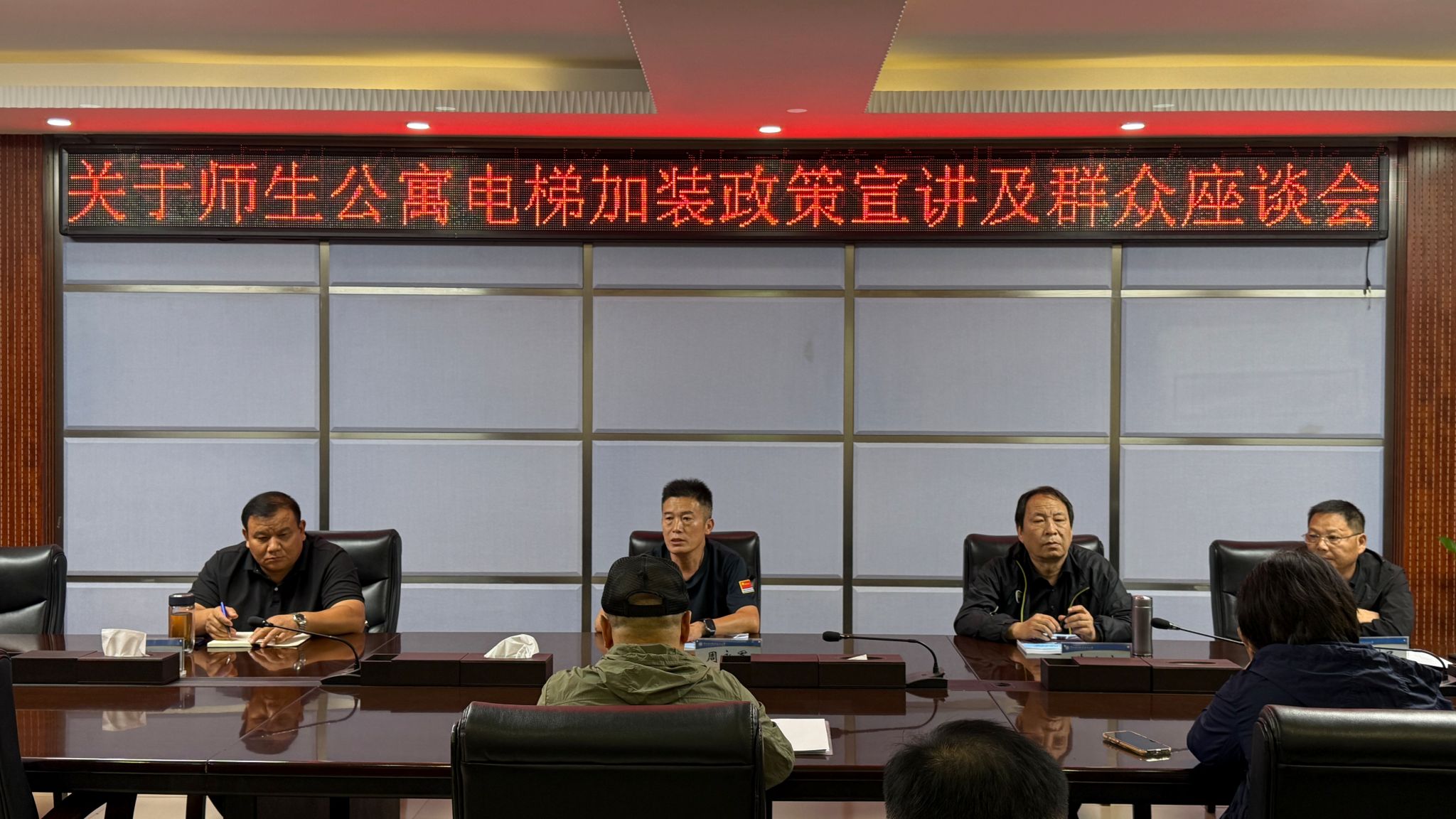 为切实推进师生公寓电梯加装这一民生实事,精准解读政策流程、倾听教职工诉求,9月18日下午,示范区住建局联合市住建局物业中心、市城市有机更新指挥部,与我校共同召开师生公寓电梯加装政策宣讲及群众座谈会。会议由我校工会副主席田万涛主持,示范区住建局副局长周树民、市住建局物业中心工会主席牛小庆、市城市有机更新指挥部周永军与贾长江,以及我校基本建设办公室主任师军良、国有资产管理处陈俊丽、工会副主席兼女工委主任翟志华,12位师生公寓代表共同参会。