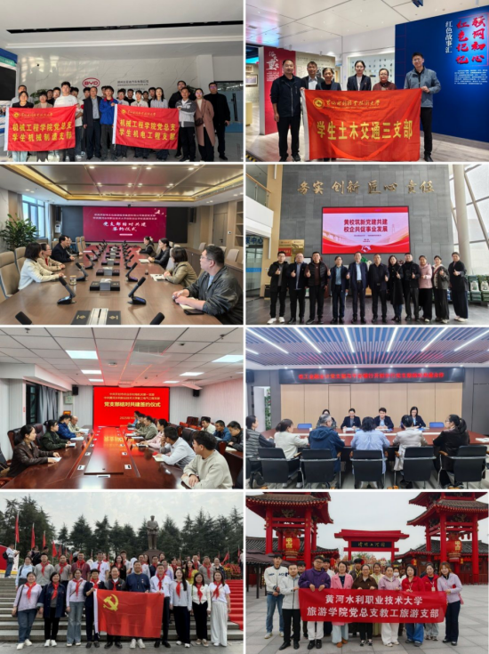 各教学单位党支部聚焦专业特色,与中水十四局、中铁十局、中建七局、郑州比亚迪、开封文旅等行业地方的龙头企业党组织,与黄河河务局、开封市农业农村局等事业单位党组织合作共建,把课堂搬进工地,让党员走进车间,实现理论共学、技术共研、活动共办,成果共享,使党建工作融入产业链、嵌入教学链、贯通育人链,充分发挥学校智力技术优势,服务区域产业发展升级。