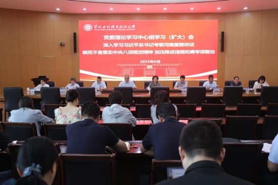 6月26日,我校在行政楼第五会议室召开党委理论学习中心组专题学习(扩大)会,深入学习贯彻习近平总书记考察河南时重要讲话精神,贯彻落实中央八项规定精神,加压推进违规吃喝专项整治。党委理论学习中心组全体成员、全校各部门主要负责人参加会议。会议由党委书记周保平主持。
