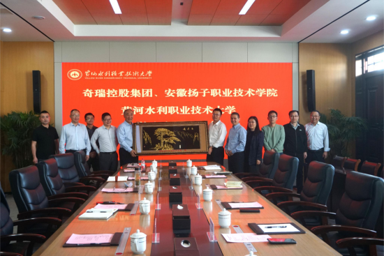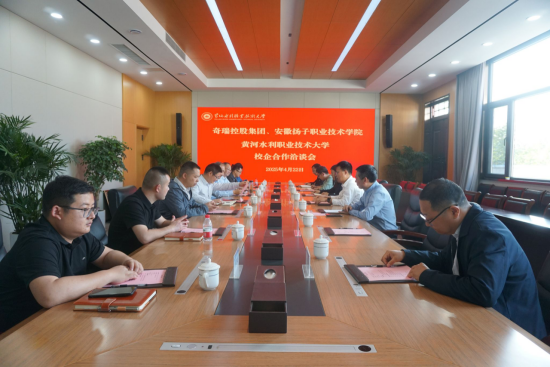 4月22日,奇瑞控股集团奇瑞大学校企合作总监姚永来、安徽扬子职业技术学院校长徐建平等一行8人来我校洽谈校企合作工作。我校党委副书记、校长胡昊,副校长朱焕立出席洽谈会,教务处、对外联络与合作处、招生就业服务中心、机械工程学院等部门负责人参加了会议。