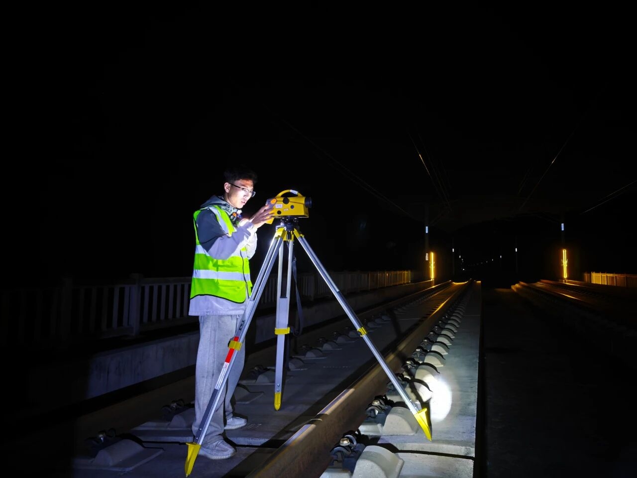 面对高铁线路繁忙、天窗时间珍贵、环境恶劣等多重挑战,此次复测项目堪称对技术、管理与意志的综合大考。黄河水利职业技术大学紧密依托校企合作平台,将课堂延伸到工程一线。学生们在资深工程师与学校教师的联合指导下,直接参与高程测量、平面控制、GNSS架设、线型拟合等核心作业。通过“老带新、跨项目联动”的实战模式,学生不仅熟练操作徕卡TS60全站仪、精密水准仪、惯导小车等先进设备,更深刻理解了在复杂条件下“精准坚守”的职业内涵,实现了从生手到能手的快速蜕变。