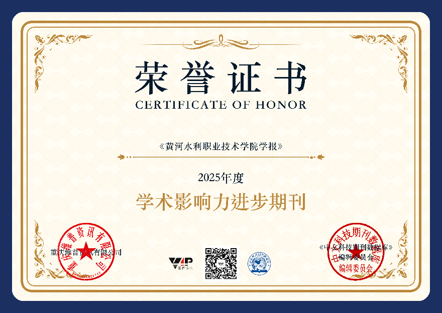 近日,重庆维普资讯有限公司、《中文科技期刊数据库》编委会公布2025年度优秀期刊评选结果,《黄河水利职业技术学院学报》凭借显著的学术质量提升和影响力增长,荣获“学术影响力进步期刊”称号。