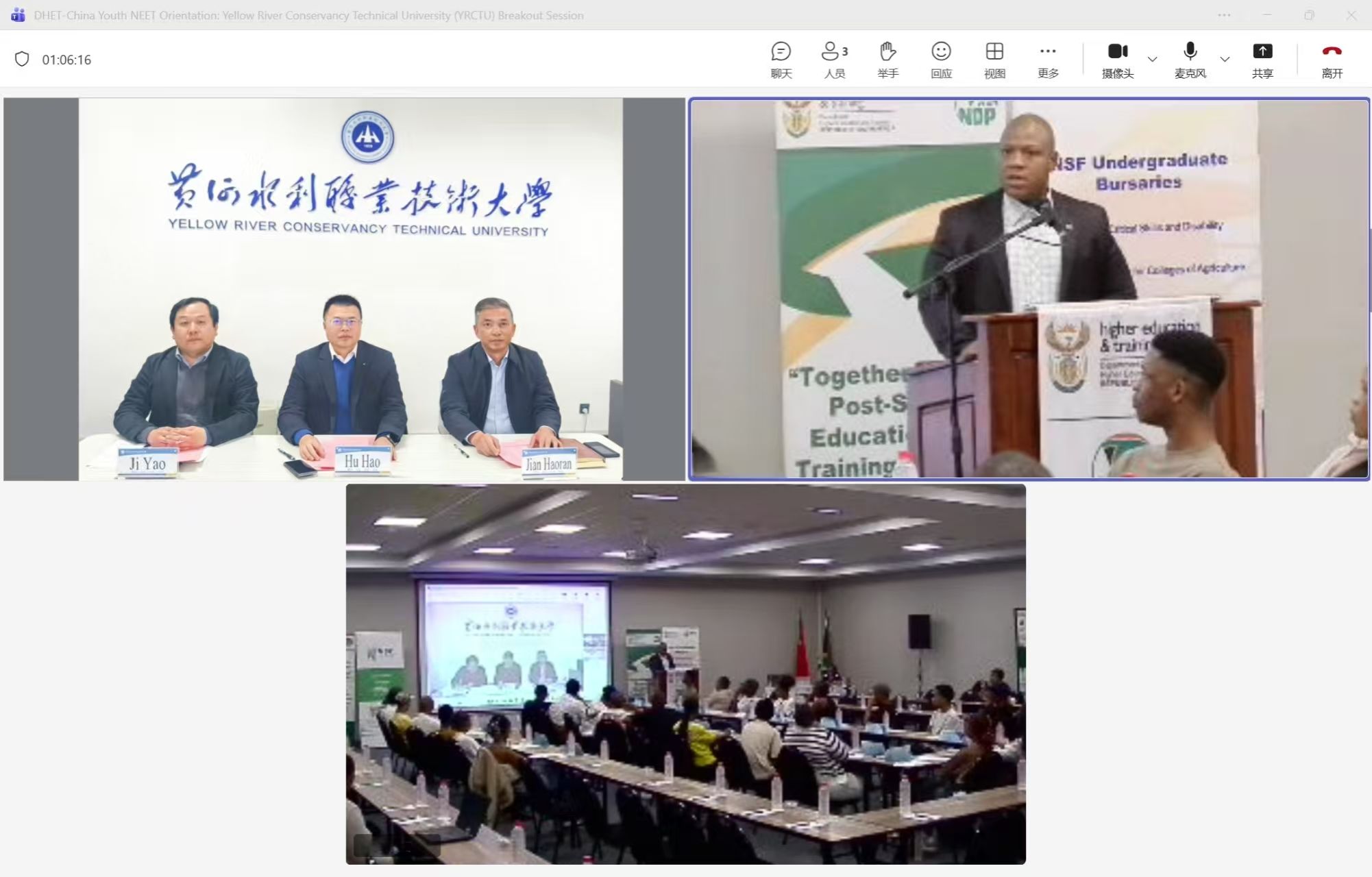 胡昊对南非高等教育与培训部、中国驻南非大使馆致以诚挚感谢,向即将来华学习的南非学子致以热烈欢迎,并介绍了学校的发展历程与国际化办学成果。他表示,学校已组建国际化教学与管理团队,定制了贴合南非产业需求的人才培养方案,并在生活保障等方面做好全方位准备。他还为南非学子送上行前叮嘱,一是做好来华准备,注意出行安全;二是保持积极心态,尽快适应新环境;三是珍惜留学机遇,在华学有所成,成为增进中南两国友谊的使者。