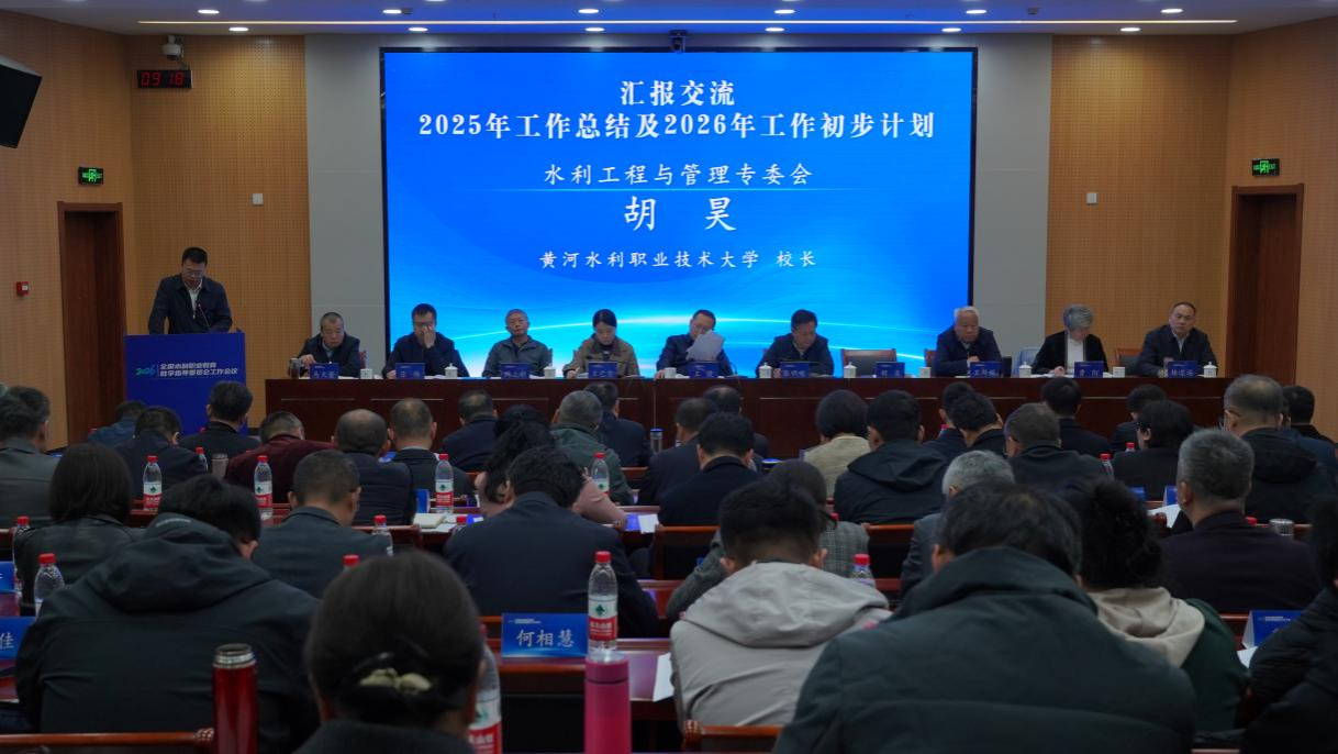 会上,胡昊就水利工程与管理专业委员会(以下简称水工专委会)2025年工作进行汇报,围绕专业教学标准、资源库建设、课程思政、国际化交流等十个方面,系统总结了水工专委会一年来以“高标准、高要求、高质量”为基准推动水工类专业高质量发展的成效,并部署了2026年“锚定一核心、联动四主线”的工作安排。他表示,2026年水工专委会将锚定“一个核心”(聚焦五大教学关键要素改革),联动“四条主线”(产教融合、中高本贯通、数字赋能、职教出海),做好以下八个方面的工作:一是聚焦专业设置改革,加强动态调整和优化布局;二是聚焦课程组合改革,加强内容更新和数字教学;三是聚焦教材建设改革,加强多元开发和形态创新;四是聚焦教师培养改革,加强能力细化和思政融入;五是聚焦实习实训改革,加强基地升级和协同共享;六是聚焦职教体系改革,加强纵向贯通人才通道;七是聚焦数字赋能改革,加强数智融合教学形态;八是聚焦国际化交流合作,加强标准引领和资源融通。会议期间,水工专委会召开工作会议,对2026年度专委会具体工作进行了深度研讨和细致布置。