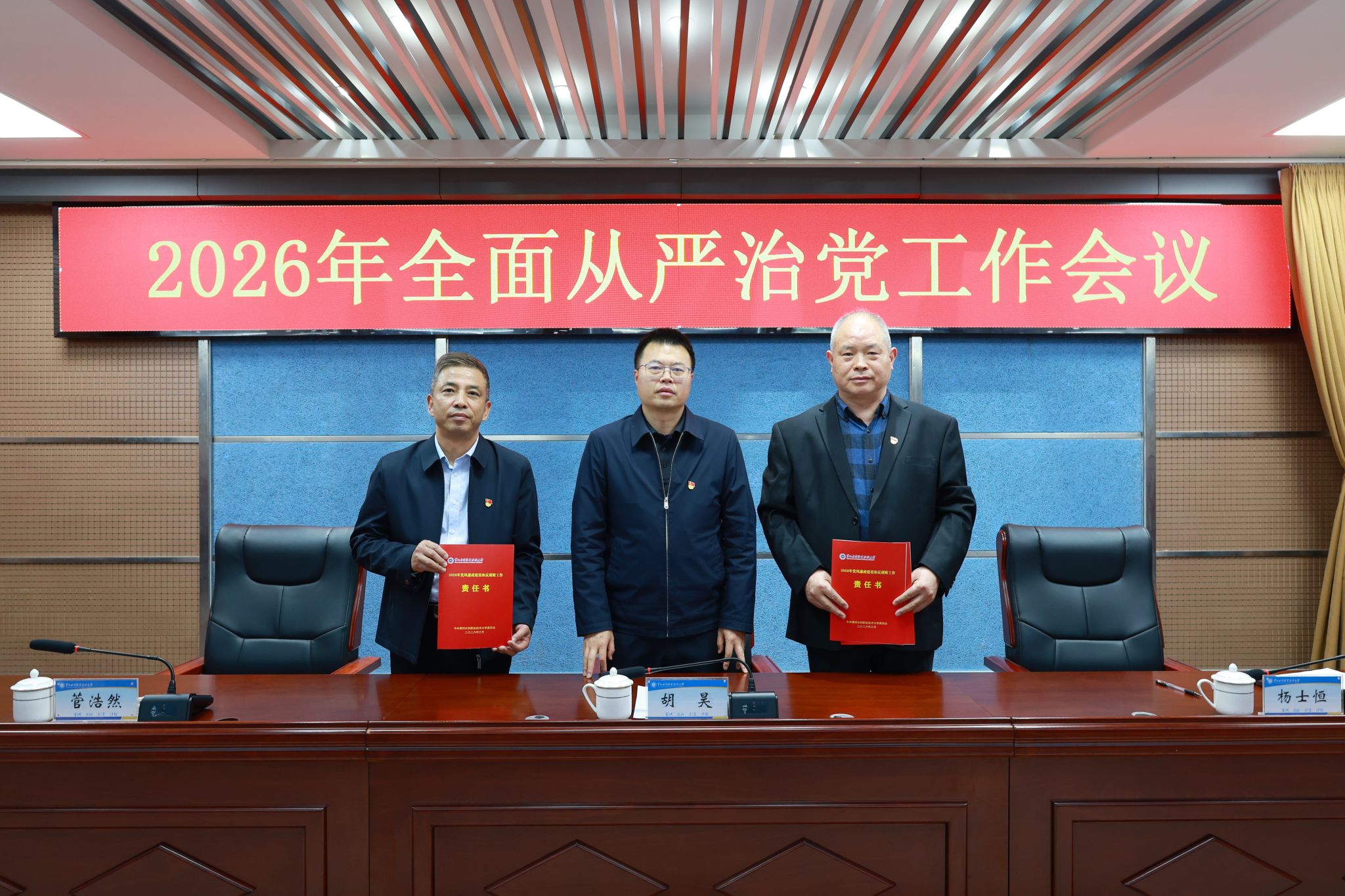3月30日,我校在3号实训楼学术报告厅召开2026年全面从严治党工作会议。会议深入学习领会习近平总书记在二十届中央纪委五次全会上的重要讲话和全会精神,回顾总结过去一年学校全面从严治党工作,研究部署2026年重点任务,签订《党风廉政建设与反腐败工作责任书》。全体校领导出席会议,全校中层干部参会。会议由党委副书记、工会主席杨士恒主持。