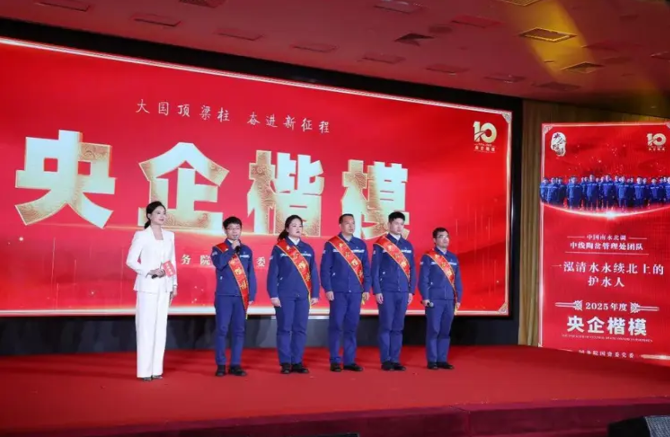 2025年度“央企楷模”颁奖现场,康静伟校友代表团队发言(左二)
