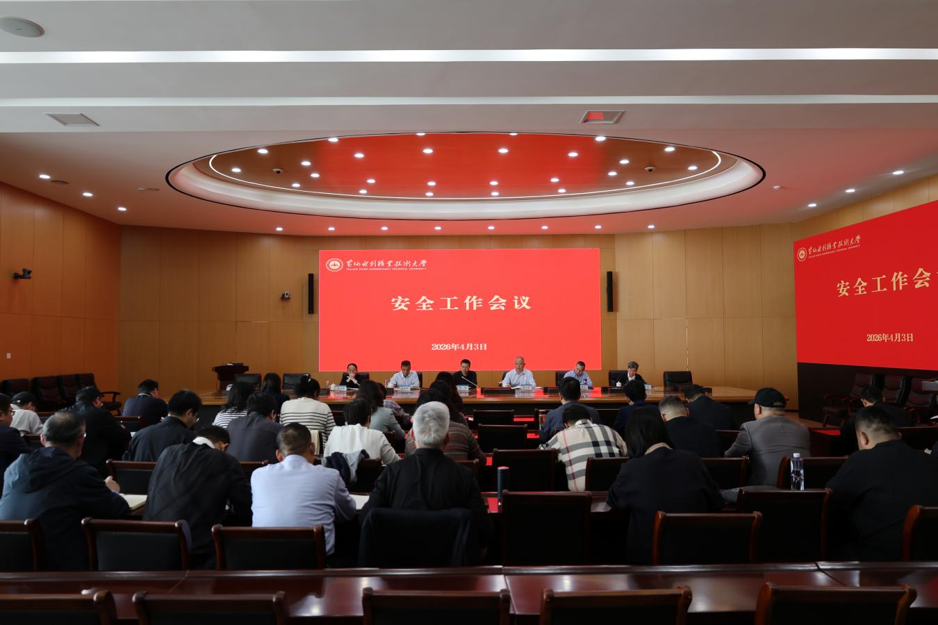 近期,我校在行政楼第五会议室召开第十九期安全工作会议。全体校领导出席会议,全校中层正职参加会议。会议由校长胡昊主持。