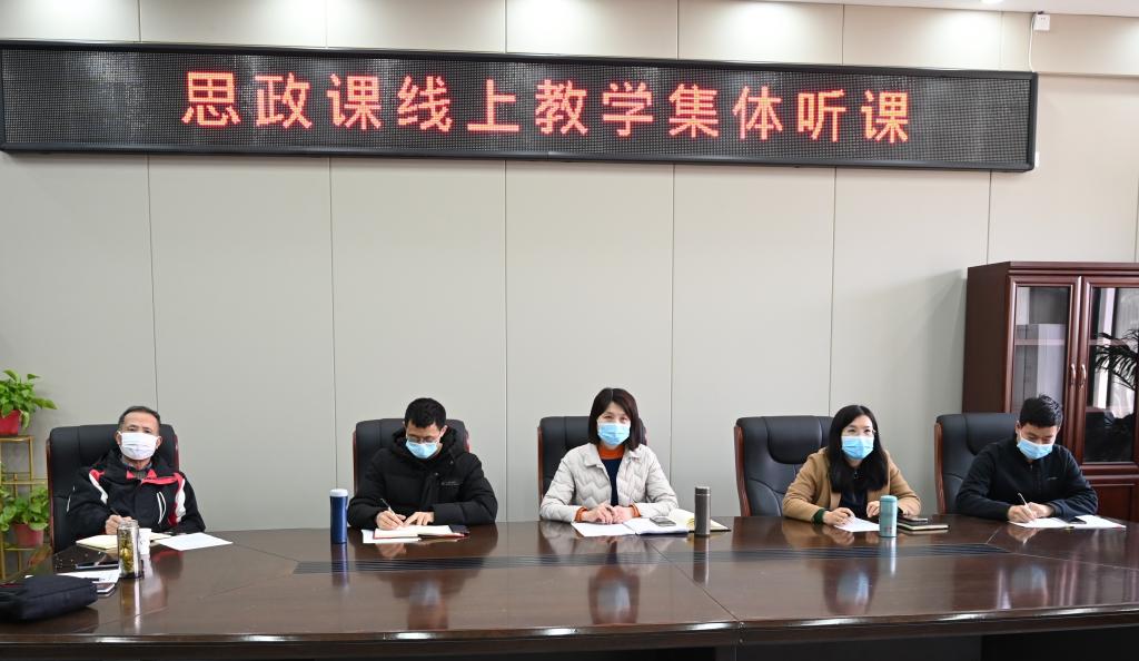 焦爱萍强调各专业要定期组织集体听课和集体备课活动,实施专业课程诊改,不断提升打磨出更好的教学课堂。为进一步提高疫情防控期间线上教学质量和我校思政课教学水平,焦爱萍提出三点要求:一是坚持以学生为本,让线上教学亲起来。注重运用新媒体,通过课前调研、平台大数据诊断等方式了解学生思想困惑、关注学生学习动态,深入开展学情分析,积极回应学生普遍关心的热点难点问题,充分做好教学设计;将社会之需和学生之需相结合,思政小课堂与社会大课堂相融合,把思政课上得既接地气又解思想之渴,提升课堂亲和力。二是要强化师生互动交流,使线上思政课活起来。充分利用好智能课堂平台,把课程学习资料、讨论主题、视频资料等内容课前及时推送,更好引导学生开展自主性学习,拓展和延伸思政课学习空间;课堂上既利用智能课堂实现线上互动交流,又通过视频与学生面对面互动交流,激发课堂活力;课后利用有效的信息交流平台及时为学生答疑,实现课下师生对话。三是要注重融入当前时事热点,让思政课教学实起来。思政课教师要认真学习专业理论知识,不断开阔视野,充分挖掘好案例、利用好案例,坚持政治性和学理性相统一,在讲好案例中加强学生对理论知识的理解,让学生对世情、国情、党情、民情能学有所思、学有所得、学有所获,产生情感共鸣,进而收获发自内心的“点头率”;用好抗疫活教材,推进疫情防控期间思政课教学工作创新,发挥思政课主阵地优势和立德树人作用。(供图:教育教学督导室)