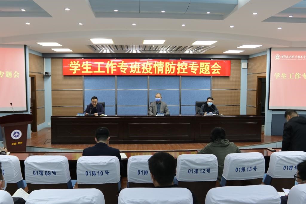 3月15日下午,我校在3号实训馆学术报告厅召开了学生工作专班疫情防控专题会议。校党委副书记、工会主席杨士恒出席会议并讲话,学生工作部相关负责人、各学院学生工作主管领导以及全体辅导员参加会议。会议由学生工作部副部长柴杉主持。