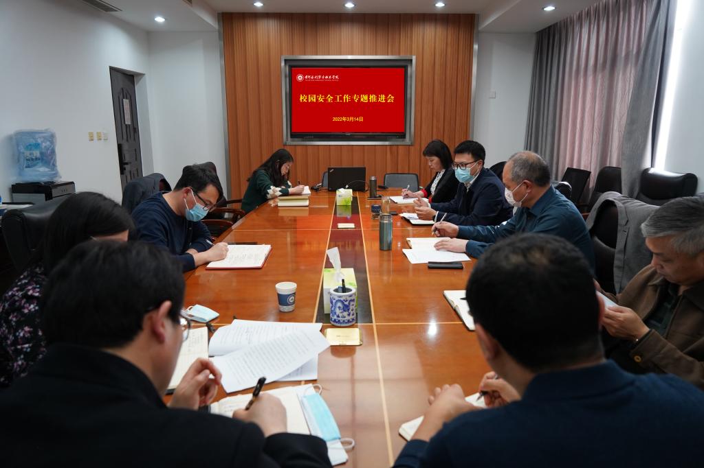 3月14日,我校在行政楼第三会议室召开校园安全工作专题推进会,安排部署学校安全工作,校长胡昊、党委副书记杨士恒、副校长焦爱萍、副校长刘玉宾出席会议。党政办公室、学生工作部、教务处等部门负责人参加会议。