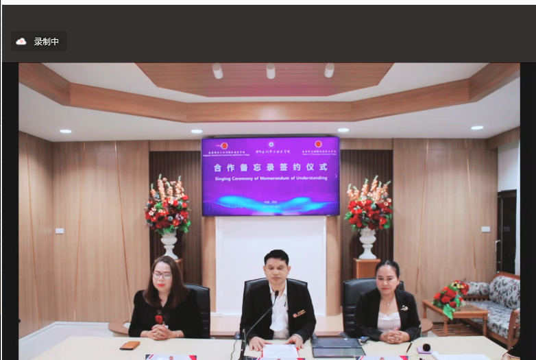 12月2日上午,我校与泰国那空西塔玛拉职业学院及廊双工业与社区教育学院合作备忘录签约仪式在线上举行。泰国职业教育委员会办公室主任楚恩吉特·奥克土恩、那空西塔玛拉职业学院校长萨彦·撒恩苏瑞彦、廊双工业与社区教育学院校长帕瑞斯特·沃特猜博恩、我校校长胡昊出席签约仪式。对外联络与合作处、教务处、国际教育学院等部门负责人参会。