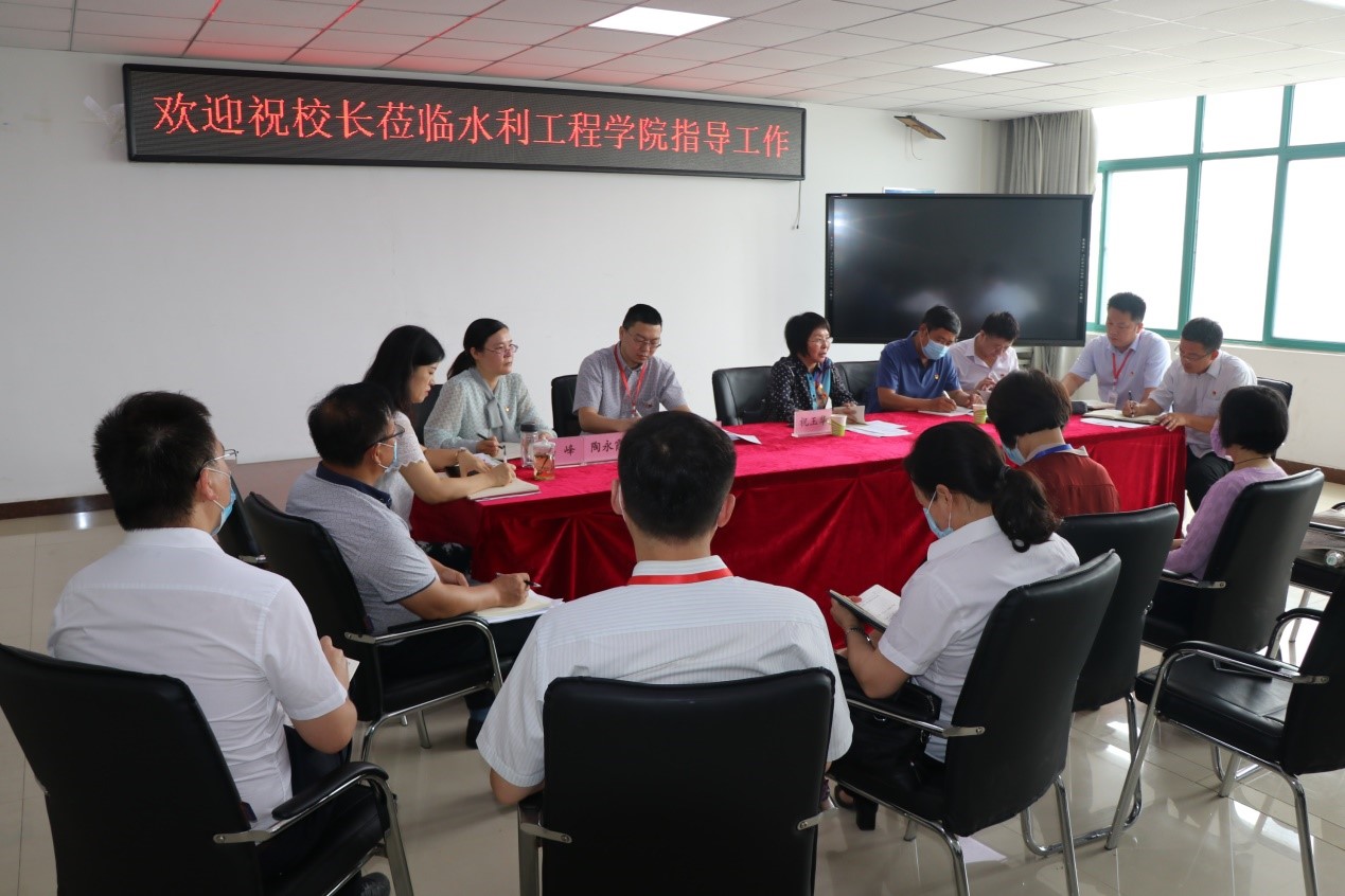 7月1日上午,校长祝玉华深入水利工程学院调研指导高水平专业群建设工作。“双高校”建设办公室主任杨中华、副主任职保平陪同调研,水利工程学院党总支书记孙天星、院长陶永霞以及全体科级以上干部、专业带头人参加了调研座谈。