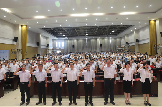 大会表彰了先进基层党组织和优秀个人。后勤管理服务中心党总支书记王建设、机械工程学院党总支教工党支部书记宋新、环境工程学院教工党支部组织委员姚新鼎分别代表先进基层党组织、优秀党务工作者、优秀共产党员进行交流发言。党委委员、党委组织部部长谷献晖带领全体党员重温入党誓词。