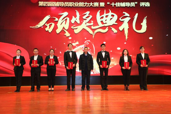 校党委书记许琰为获得“十佳辅导员”的选手颁奖并合影