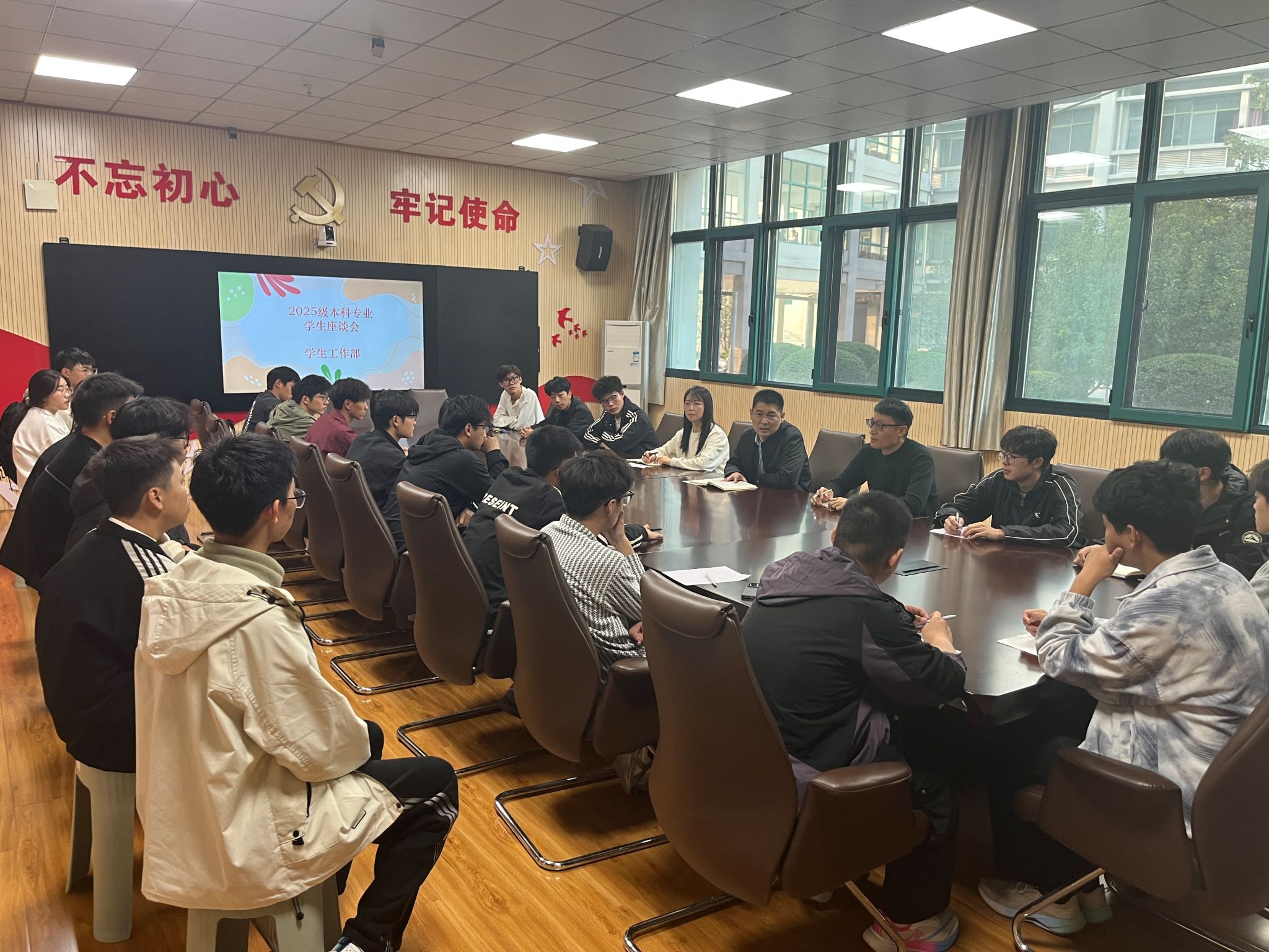10月14日,学生工作部在教学楼5111召开2025级本科专业学生座谈会,了解首届本科专业学生的学习感受、成长需求。学生工作部部长商坤、心理健康教育中心主任刘娟、思想政治教育科科长闫治宇和2025级本科班班干部参加座谈。