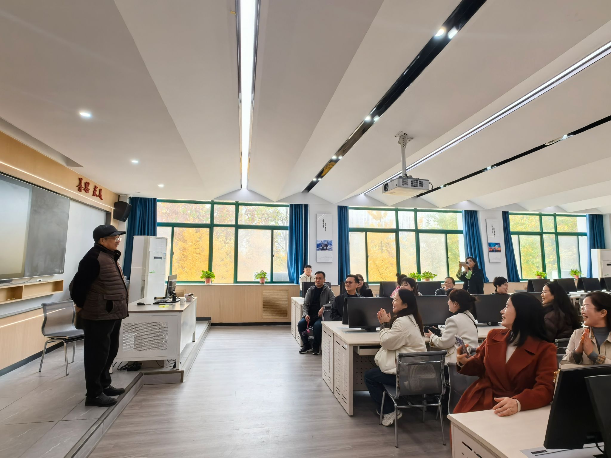 在学院领导的陪同下,校友一行参观了学院实训中心。学院领导详细介绍了实训中心的建设与课程开展情况。走进实训室,校友们重温往昔校园时光,感念师恩深厚,并热情邀请张辉、梁建民两位老师致辞,现场气氛温馨动人。