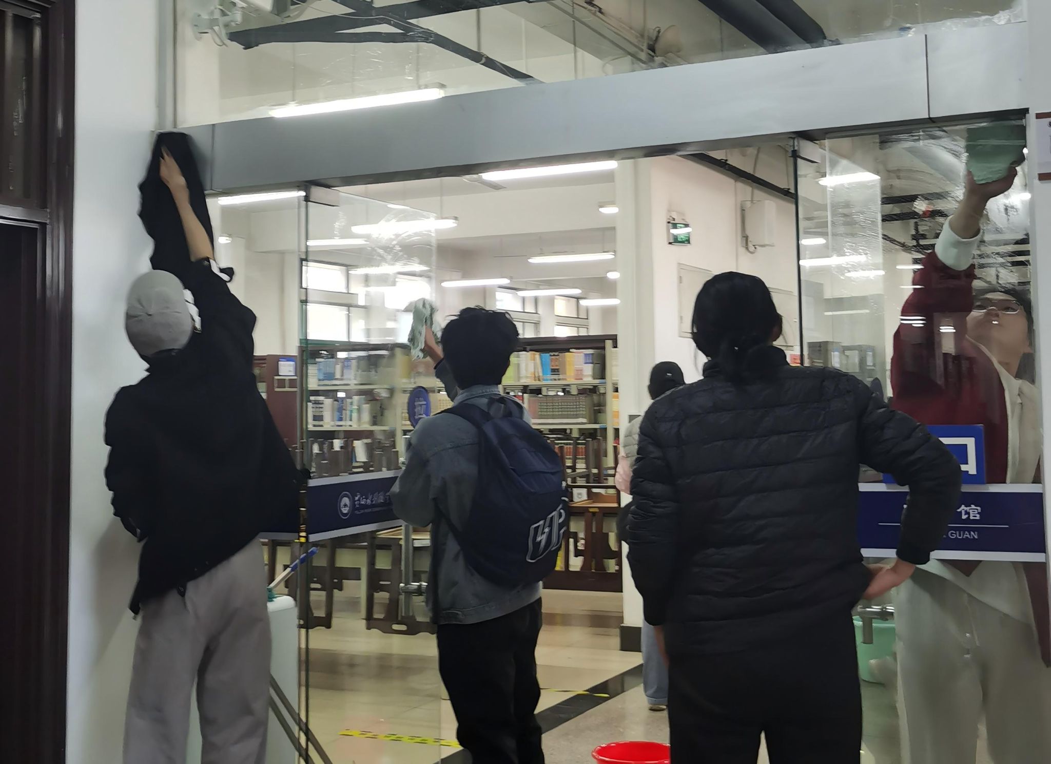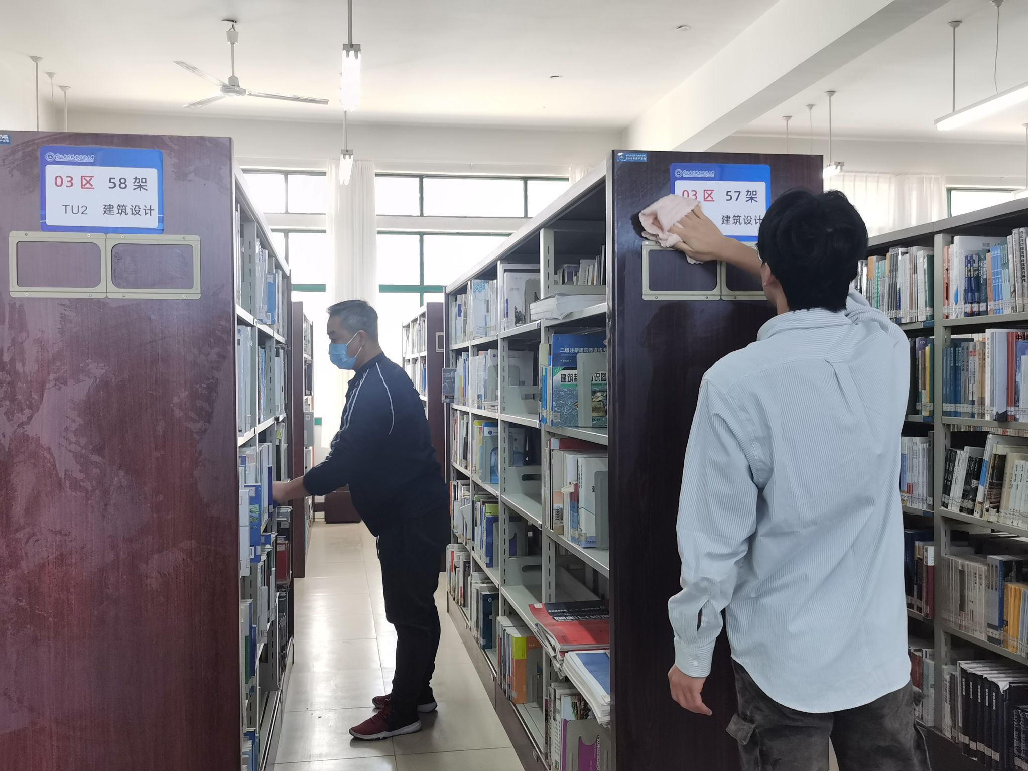 活动前期,图书馆与两个学院党总支深度对接、精准谋划,共同制定详实实施方案,为志愿服务筑牢保障。学院通过广泛宣传动员,明确职责分工、凝聚行动合力;志愿者们在图书馆统筹安排下,奔赴各书库与阅览区,手持清洁工具对桌椅表面、书架缝隙、地面角落等进行全方位清扫,不放过任何卫生死角,以踏实认真的态度展现青年担当。劳动过程中,图书馆馆员与志愿者并肩作战,一边参与清洁工作,一边耐心解答图书分类、借阅管理等相关疑问,现场互动频繁、氛围热烈有序。