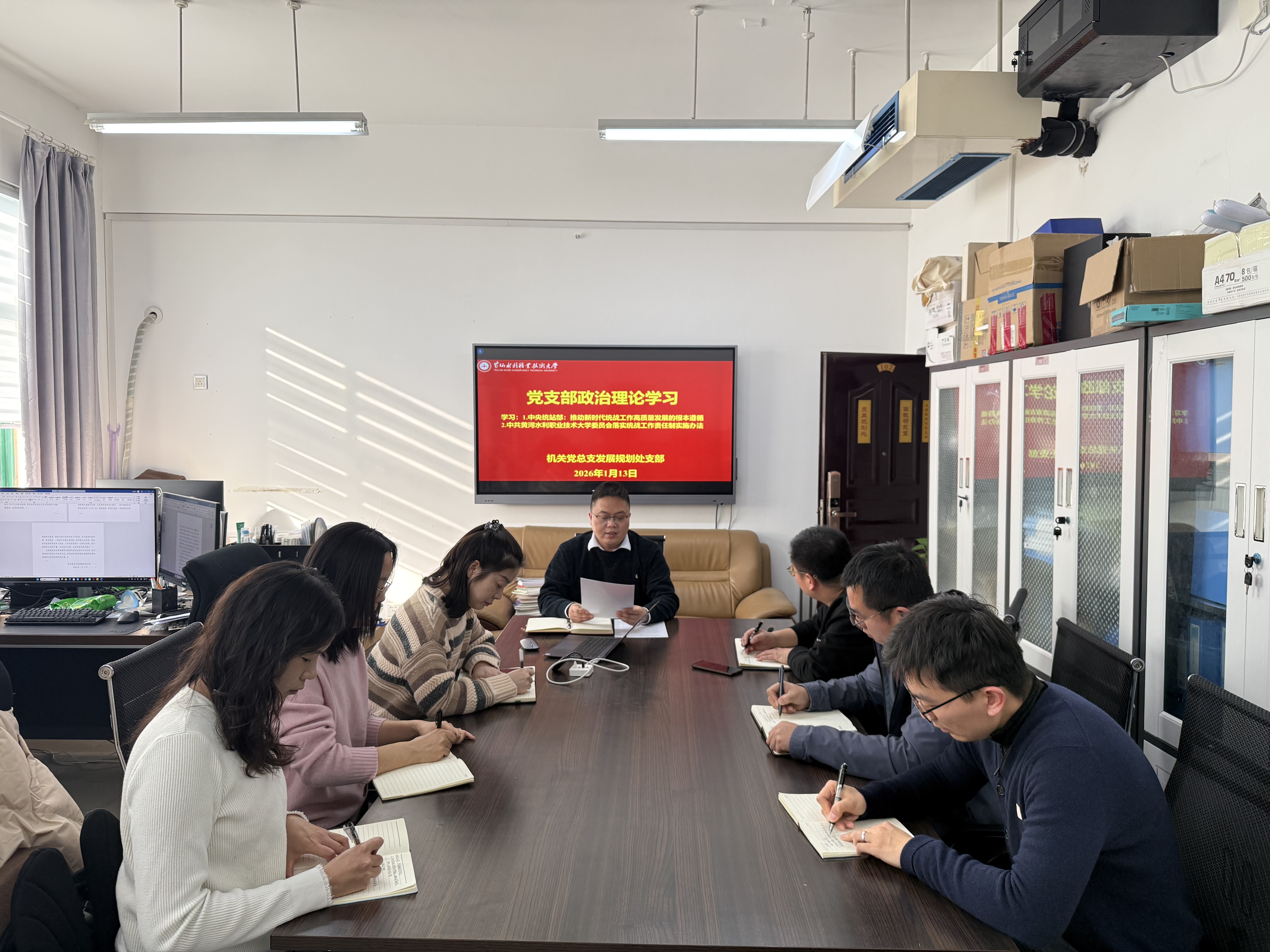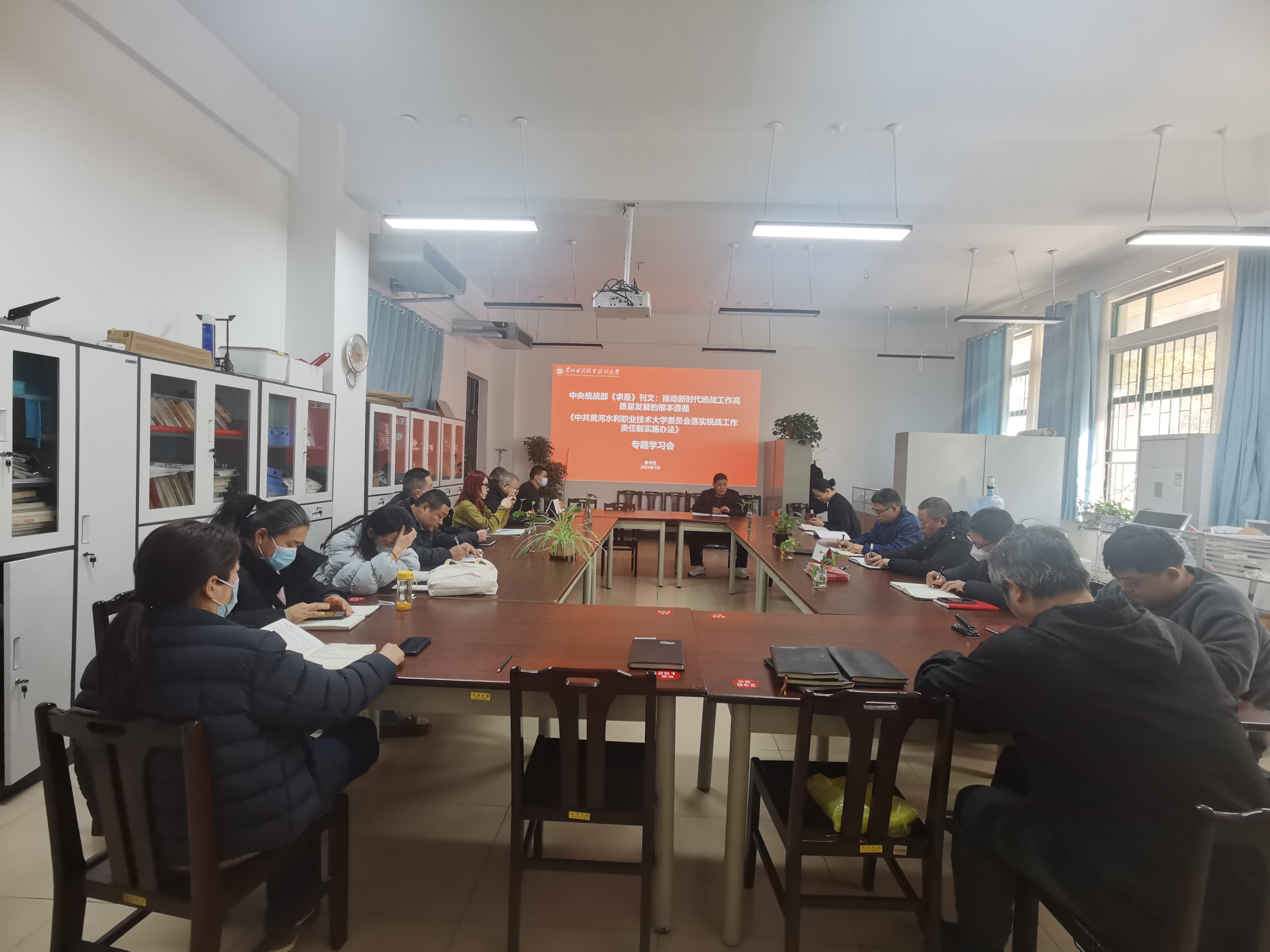 为贯彻落实《黄水2025年下半年政治理论学习及思想道德教育计划》学习要求,1月13日,全校各部门、各单位分别组织教职工传达学习中央统战部《求是》刊文:推动新时代统战工作高质量发展的根本遵循和《中共黄河水利职业技术大学委员会落实统战工作责任制实施办法》,积极引导师生及时跟进学习习近平总书记关于统战工作的重要讲话和重要指示批示精神,在推动统一战线在强国建设、民族复兴伟业中更好发挥凝聚人心、汇聚力量的政治作用,确保我校统战工作沿着正确方向高质量发展。(供图:各相关部门)