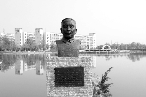 开封黄河水利职业技术学院文化景观区内的张钫铜像。张钫为该校创始人之一。黄河水院供图
