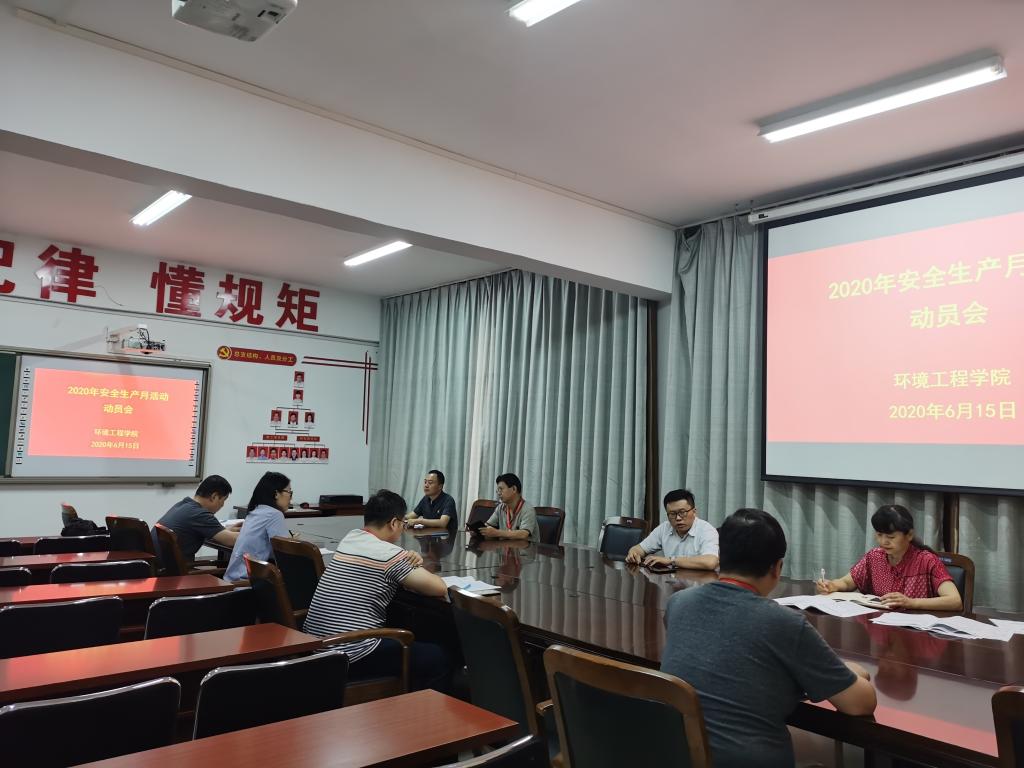 在全国第19个安全生产月到来之际,环境工程学院于6月15日下午召开2020年度安全生产月动员会,会议由副院长(主持工作)张尧旺主持,环境工程学院科级以上干部及教研室主任、实训中心主任参加了此次会议。