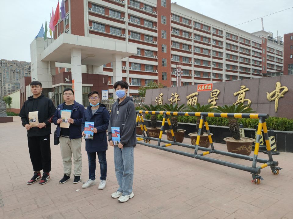 2021年4月6日,环境工程学院校企合作办主任王恺一行四人前往通许县丽星中学开展生源基地招生宣传活动。
