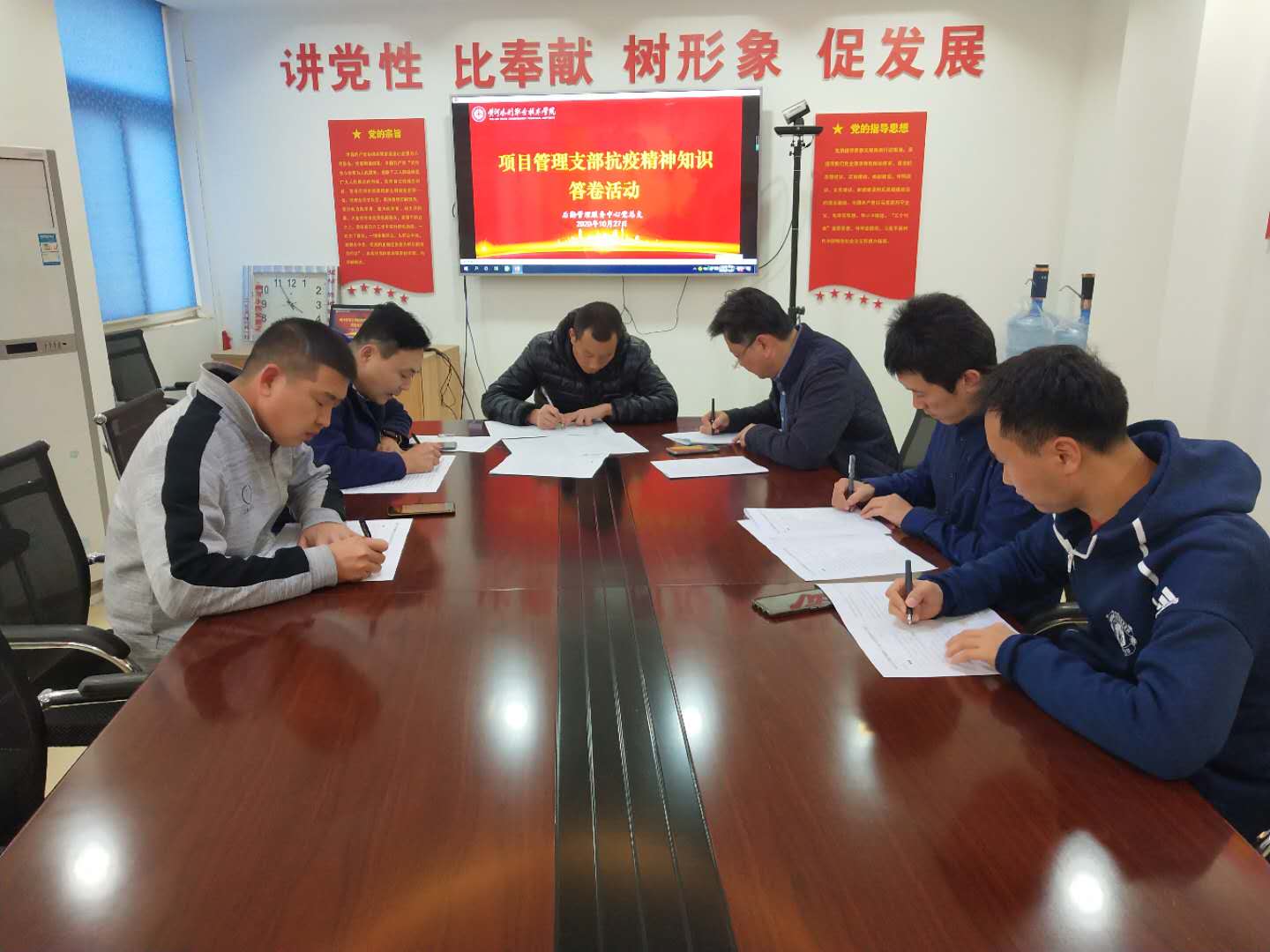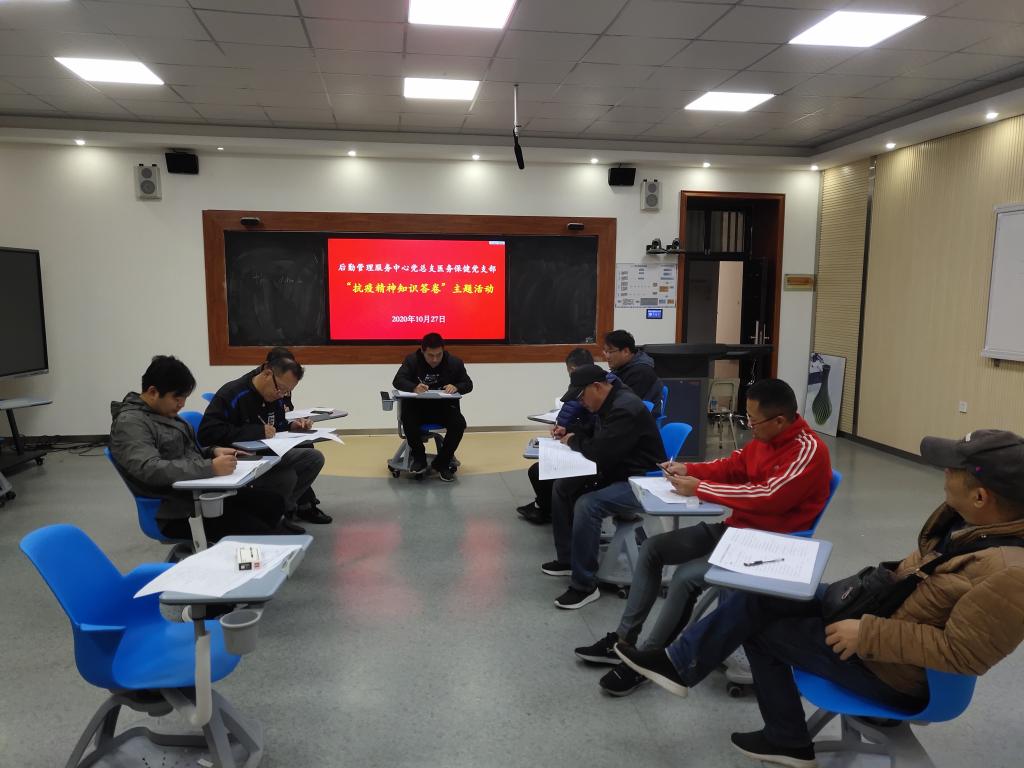 疫情不容忽视,防疫不能松懈,为了大力弘扬伟大抗疫精神、提升大家疫情防控的意识、普及疫情防控知识、应对新冠疫情秋冬季反扑反弹,继续打好疫情防控的阻击战,摒弃大家疫情防控懈怠情绪。10月27日下午,后勤党总支利用各支部政治学习之余,开展了防疫知识、抗疫精神知识有奖答卷活动,后勤全体党员参加此次答卷活动。
