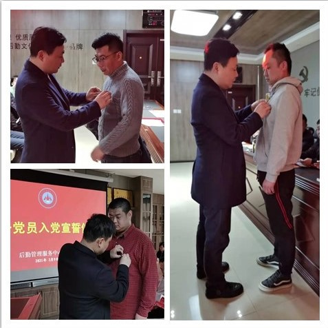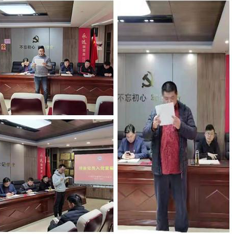 入党宣誓仪式在雄壮的《中华人民共和国国歌》声中拉开帷幕;韩景瑞宣读了我校党委组织部关于批准李翔、孙峰、巩子煜三名同志为中共预备党员的批复;两名支部书记为三名同志佩戴了党徽,并向他们赠送党章和学习书籍;三名预备党员面对党旗,在冯向波的领誓下进行集体宣誓;三名预备党员向党组织作了表态发言;三名预备党员的入党介绍人分别就三位党员思想政治、个人发展等方面进行点评及寄语;总支书记王建设做最后讲话,对三名预备党员提出了三点希望和三点要求:希望各支部继续高标准严要求培养三位同志;希望两个支部全体党员像以前一样关心爱护三名同志;希望三名同志继续严格要求自己,时刻铭记入党动机,做到思想入党,灵魂入党。要求大家永远铭记共产党人的初心和使命;要求大家谨记党纪国法,做遵纪守法的表率;要求大家勇担任务,勇往直前,在艰难困苦,集体荣誉面前,一马当先,率先垂范,发挥模范作用。入党宣誓大会在《国际歌》声中落下帷幕。